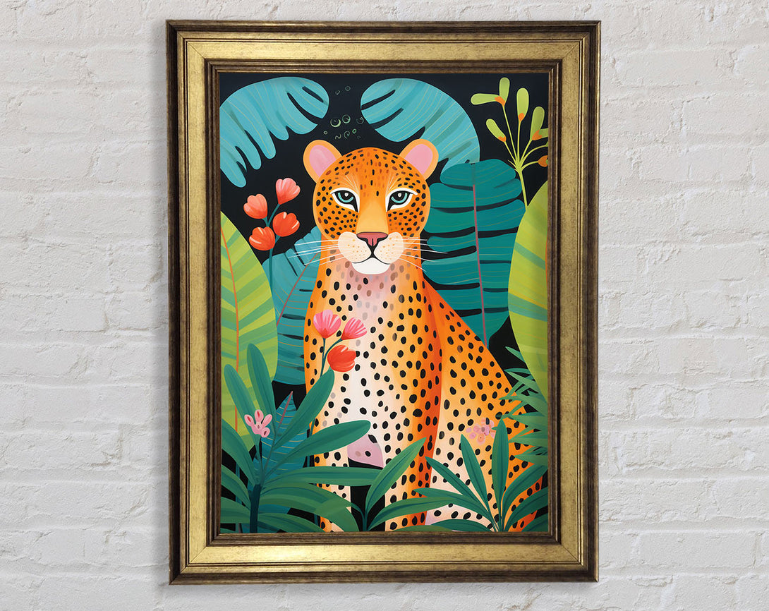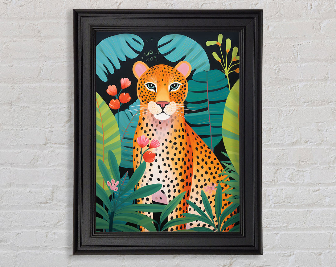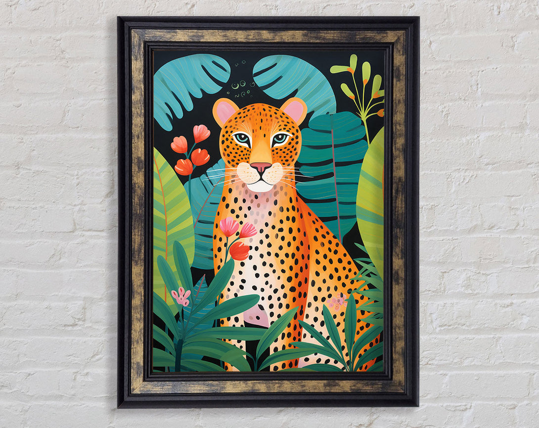 Cheetah Exotic Jungle Leaves Framed Print