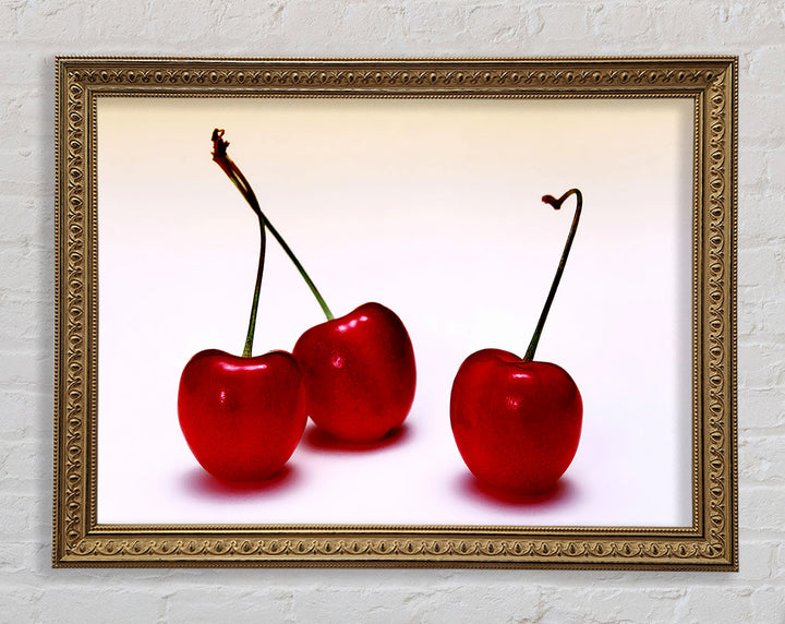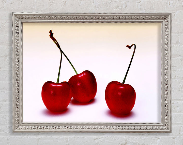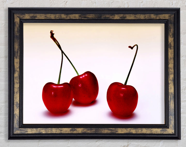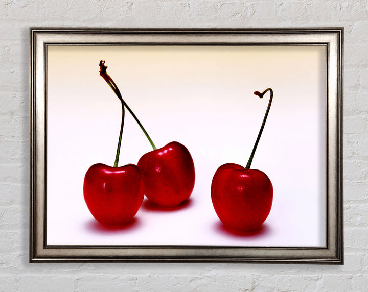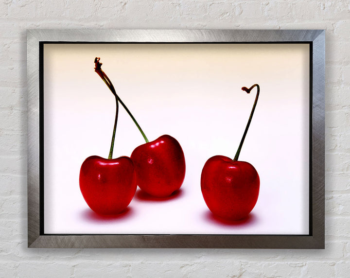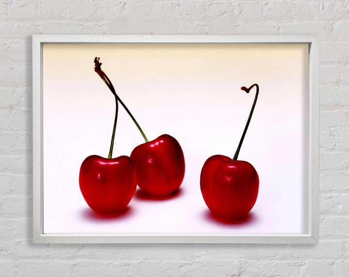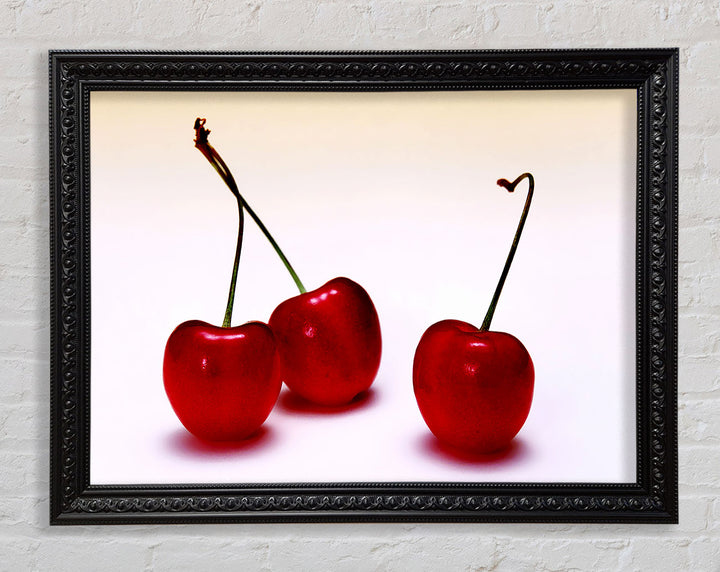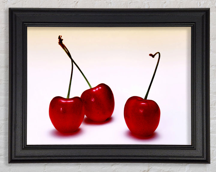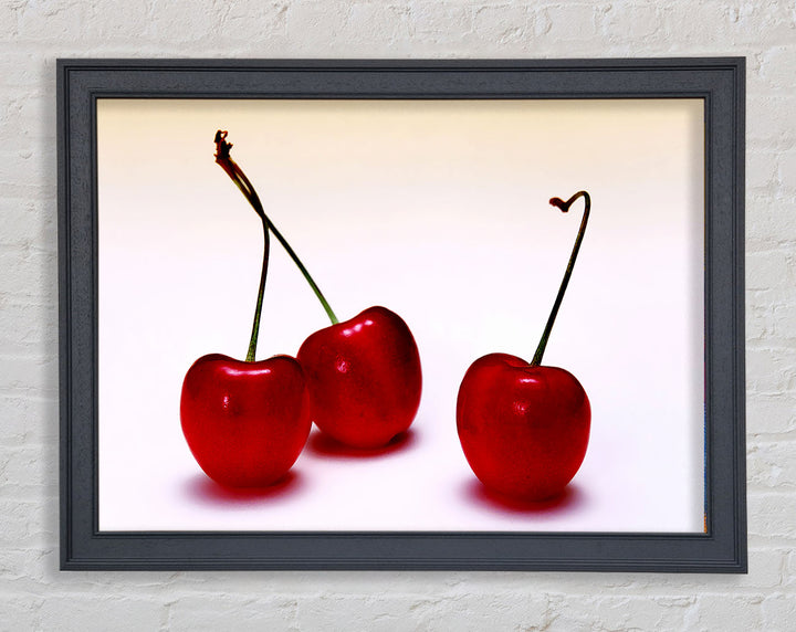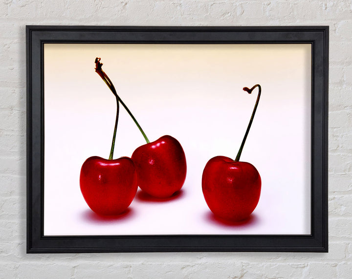 Introducing the Cherry Trio Framed Print, a stunning piece of framed art that will brighten any room. This beautiful print features three vibrant cherries, adding a touch of nature and elegance to your space. Available in six sizes, ranging from small to oversized, it can fit perfectly in any area, whether it's your living room, bedroom, or office.