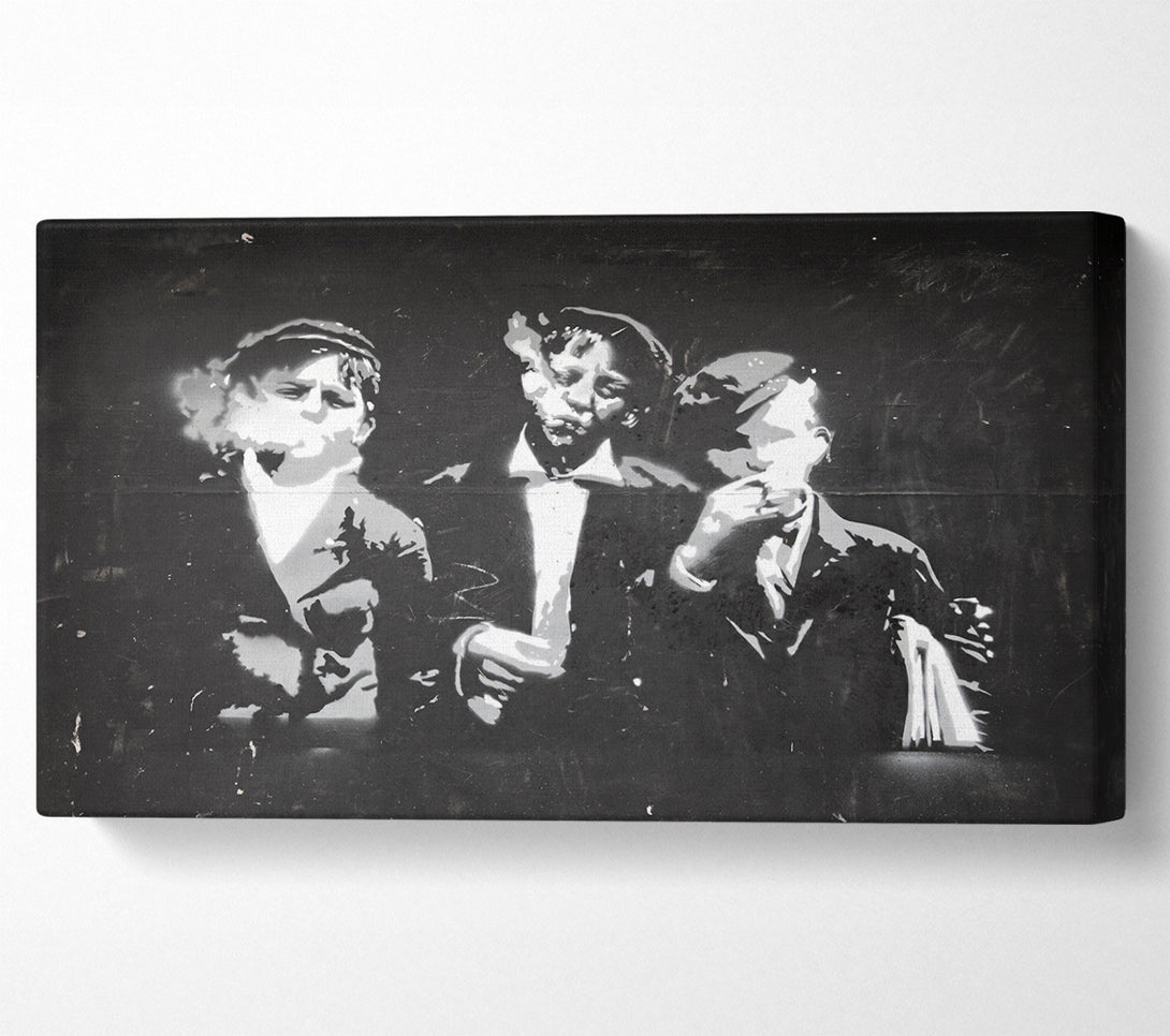 Children Smoking wide canvas, printed on coated polyester canvas. Mounted on to a 44mm box frame, ready to hang.