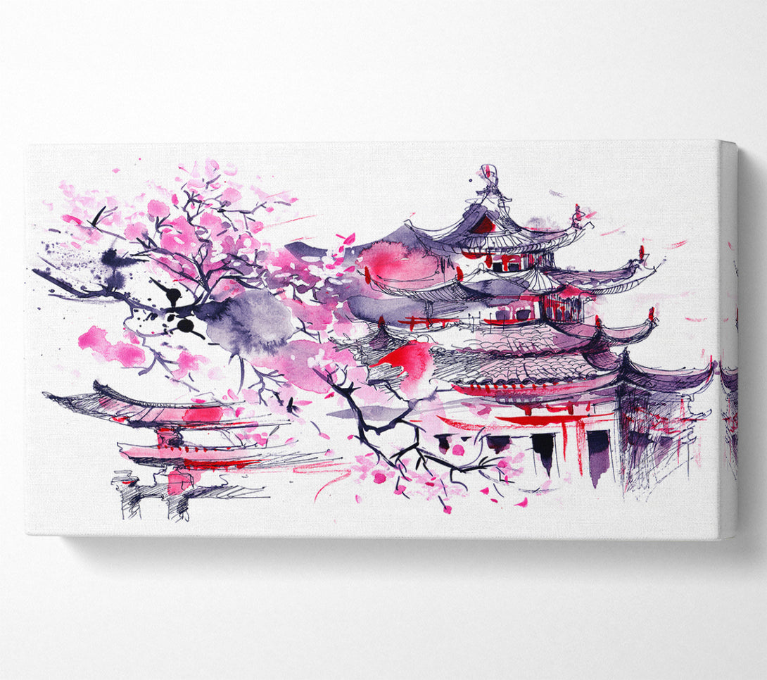 Chinese Village Red And wide canvas, printed on coated polyester canvas. Mounted on to a 44mm box frame, ready to hang.