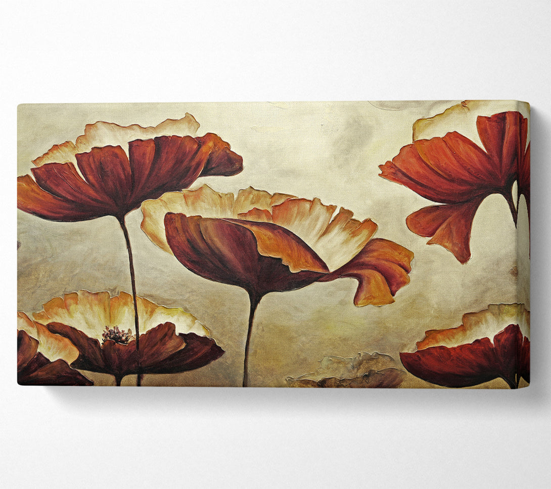 Chocolate Poppy Skies 1 wide canvas, printed on coated polyester canvas. Mounted on to a 44mm box frame, ready to hang.