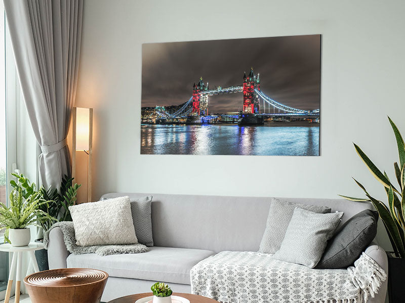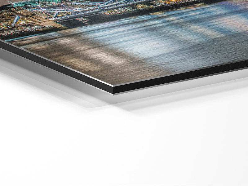Chocolate Skies Over Tower Printed on brushed aluminium dibond. A modern way to display art and easy to maintain.