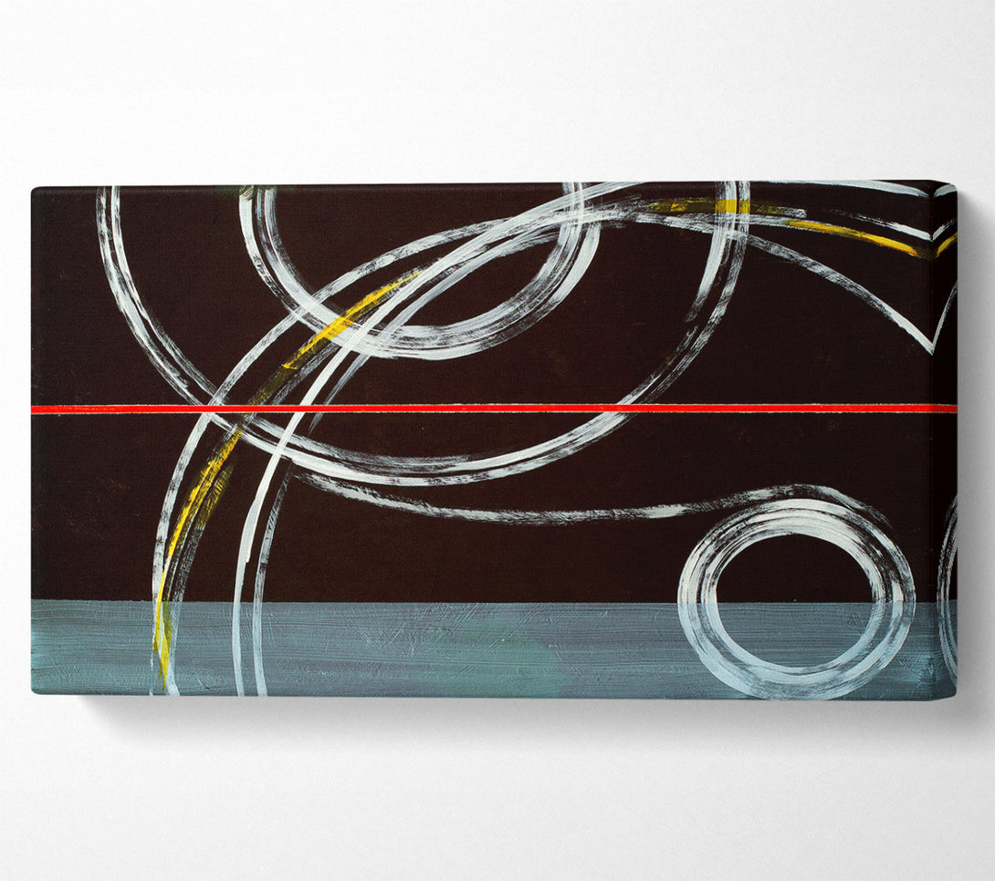 Circles Of Time 2 wide canvas, printed on coated polyester canvas. Mounted on to a 44mm box frame, ready to hang.