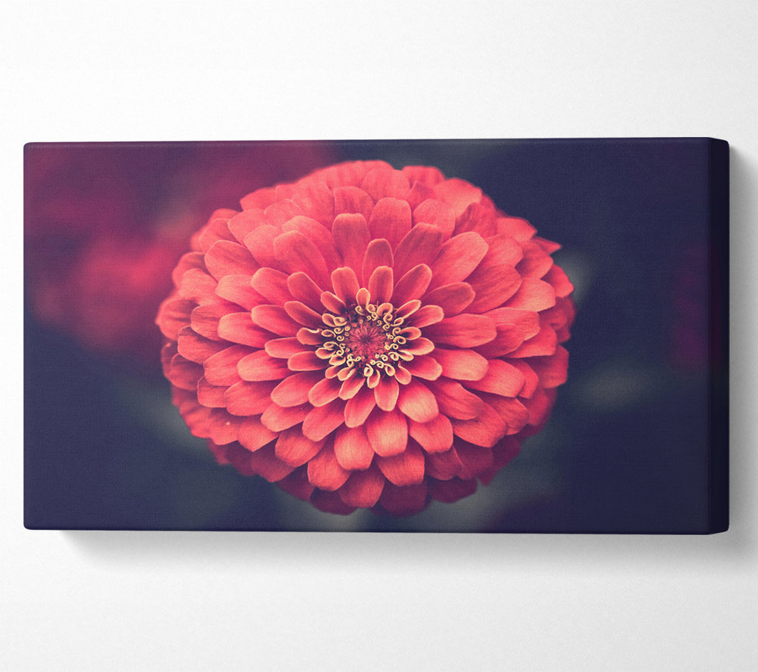 Circular flower perfectly balanced wide canvas, printed on coated polyester canvas. Mounted on to a 44mm box frame, ready to hang.