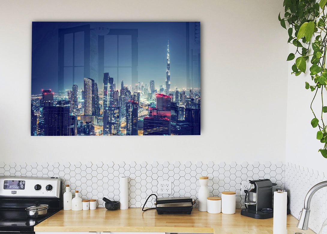 City Lights acrylic print, UV printed onto 5mm thick acrylic glass. Comes with everything you need to hang on your wall.