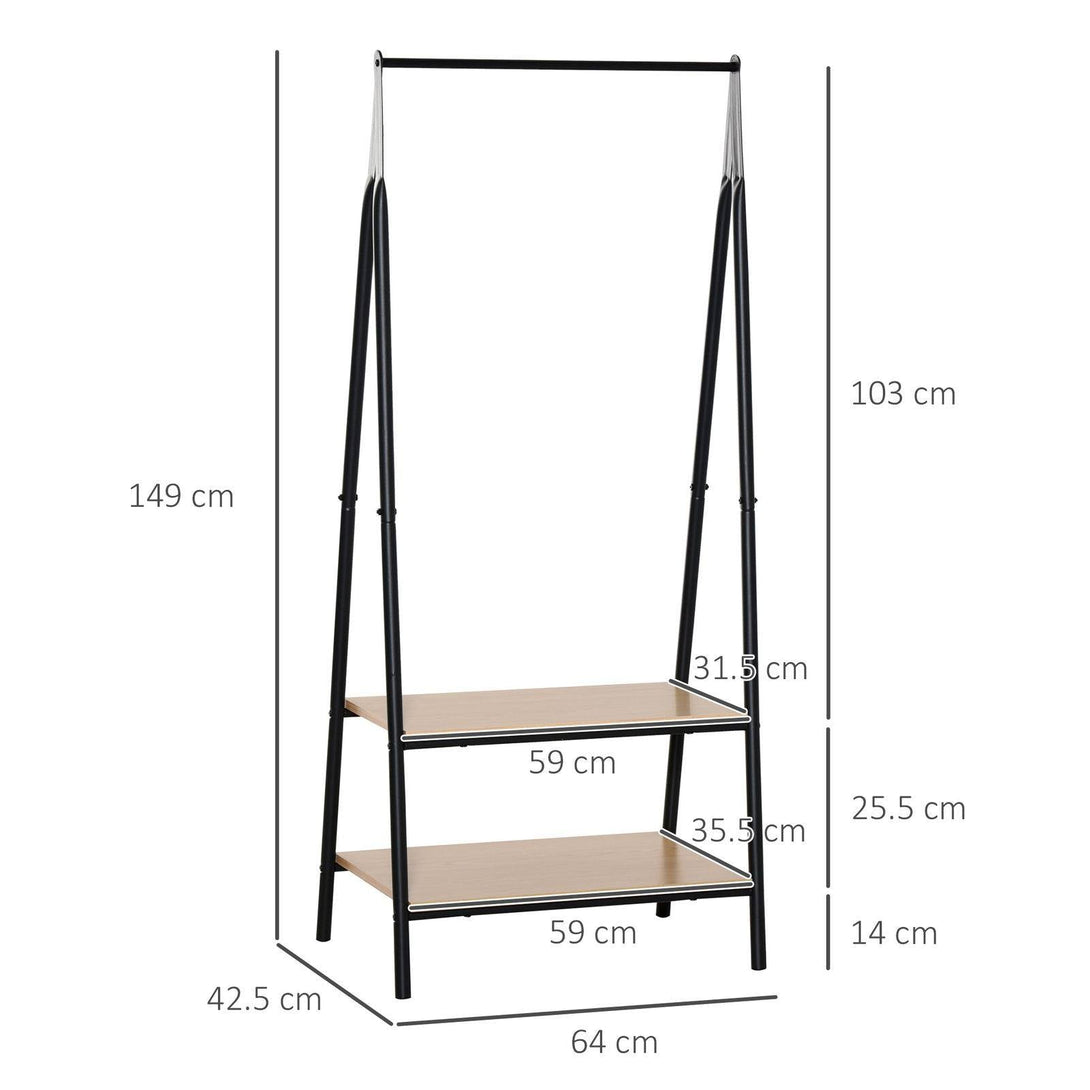 Keep your clothes neatly organised with this stylish and minimalistic clothes rack from HOMCOM. The frame is made from high quality steel to ensure durability and many years of use, and the bottom features two MDF board shelves to store shoes. Whether placed in the bedroom as an open wardrobe or in the hallway as a coat rack, this is the perfect space-saving piece of furniture for each and every home.