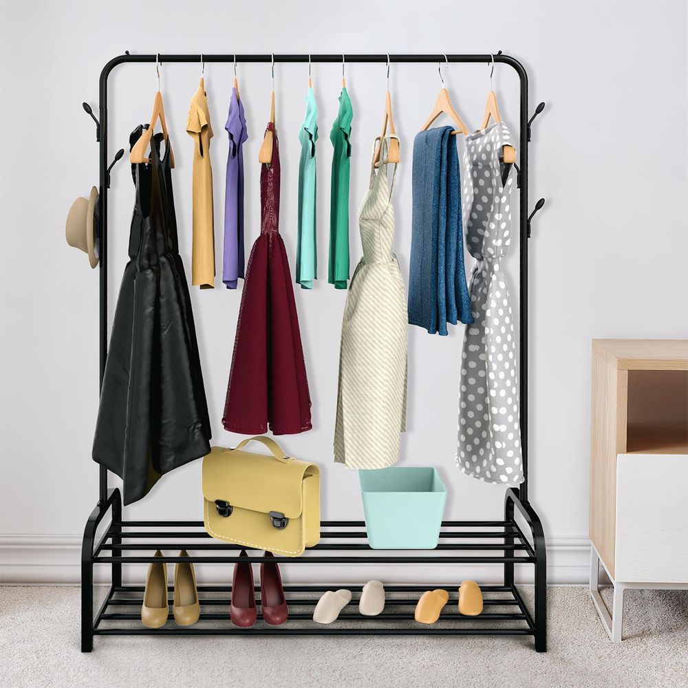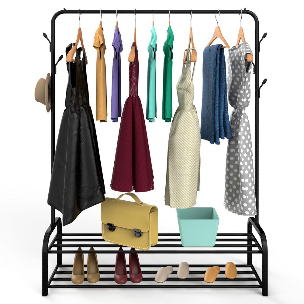 Clothes Rail Stand with Double Shoe Rack Minimalist Heavy Duty - Black