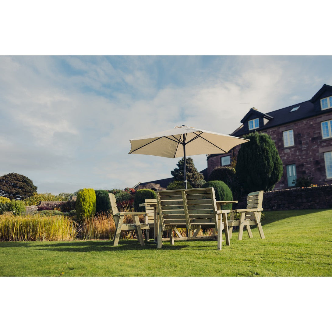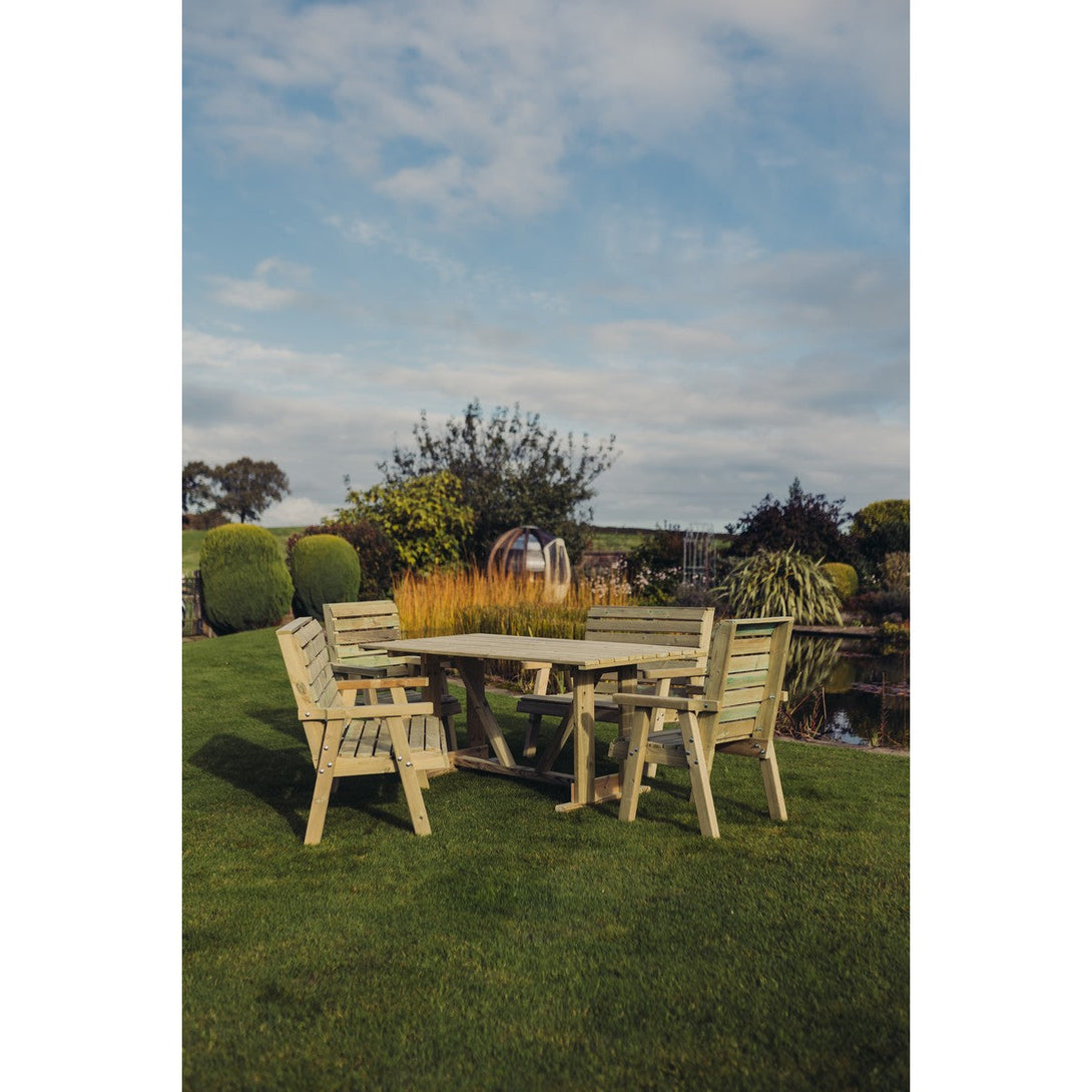 The Clover Table Set will transform your garden into a stylish space for entertaining friends and family, with its durable design and natural finish. Designed with both comfort and longevity in mind, the set has been handmade in the UK and includes a spacious table, two matching chairs, and two sturdy two-seater benches. This set is perfect for those who value quality and functionality, whilst also adding a touch of natural charm to their garden. Made from premium, pressure treated FSCĀ® certified timber to resist rot for up to 20 years with proper care.