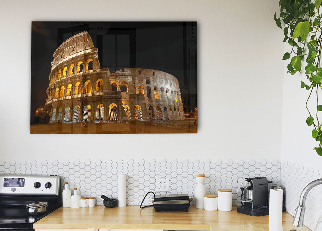 Colosseum Night Glow acrylic print, UV printed onto 5mm thick acrylic glass. Comes with everything you need to hang on your wall.