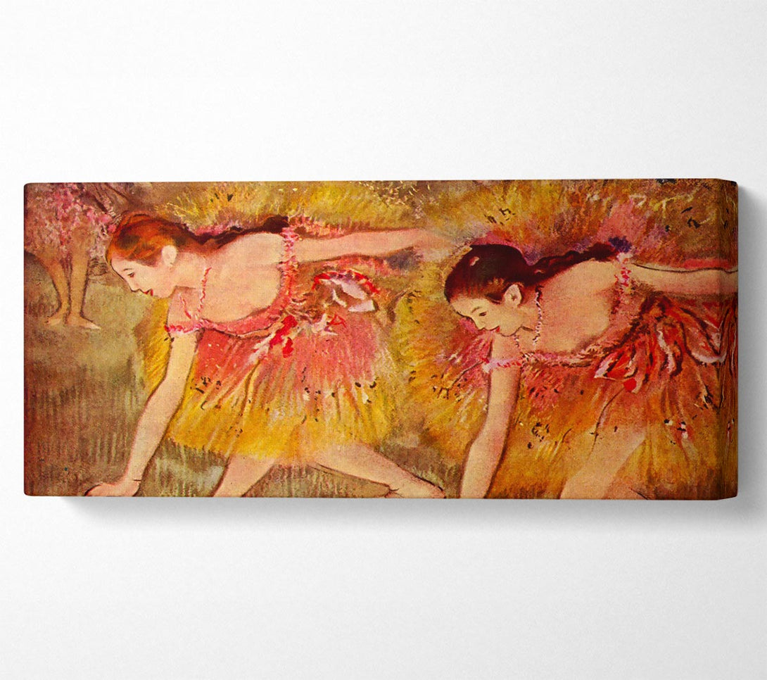 Degas Ballet Dancers canvas, printed on coated polyester canvas. Mounted on to a 44mm box frame, ready to hang.