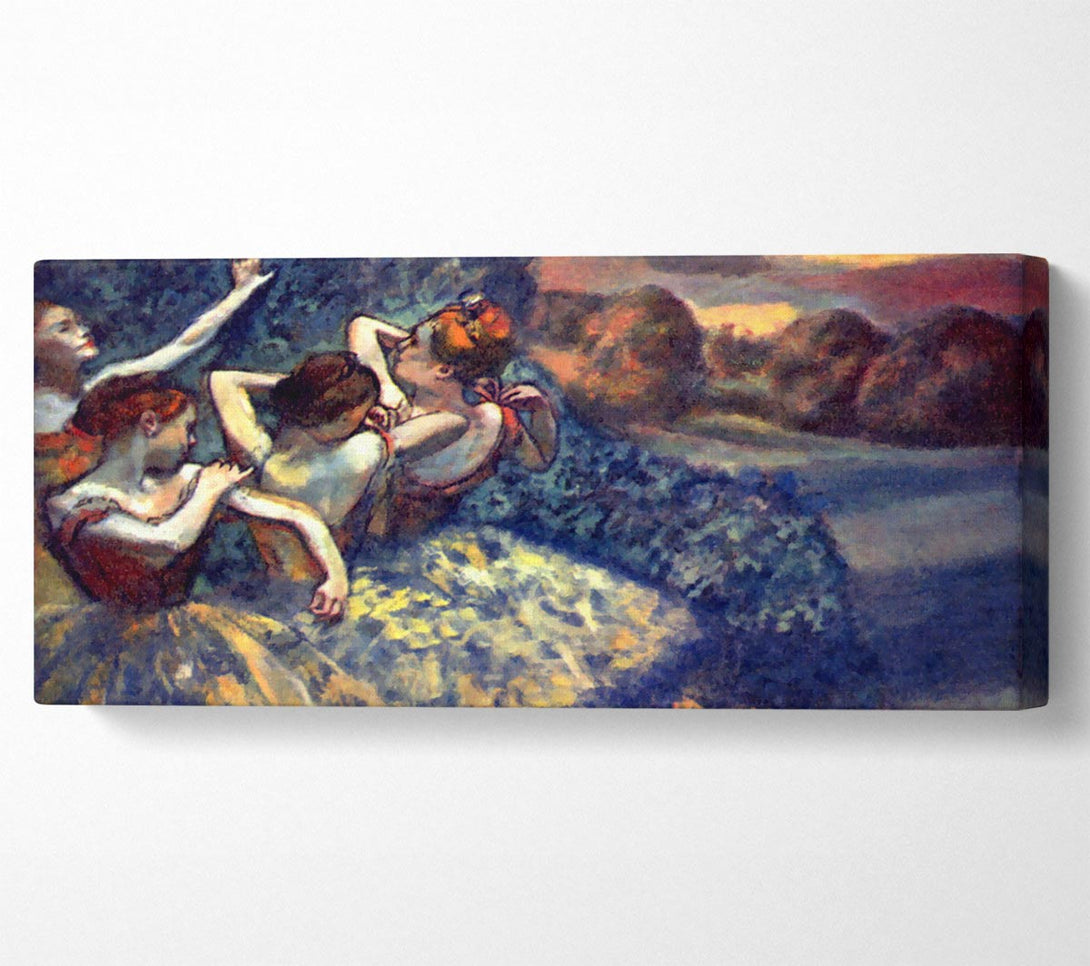 Degas Four Dancers canvas, printed on coated polyester canvas. Mounted on to a 44mm box frame, ready to hang.