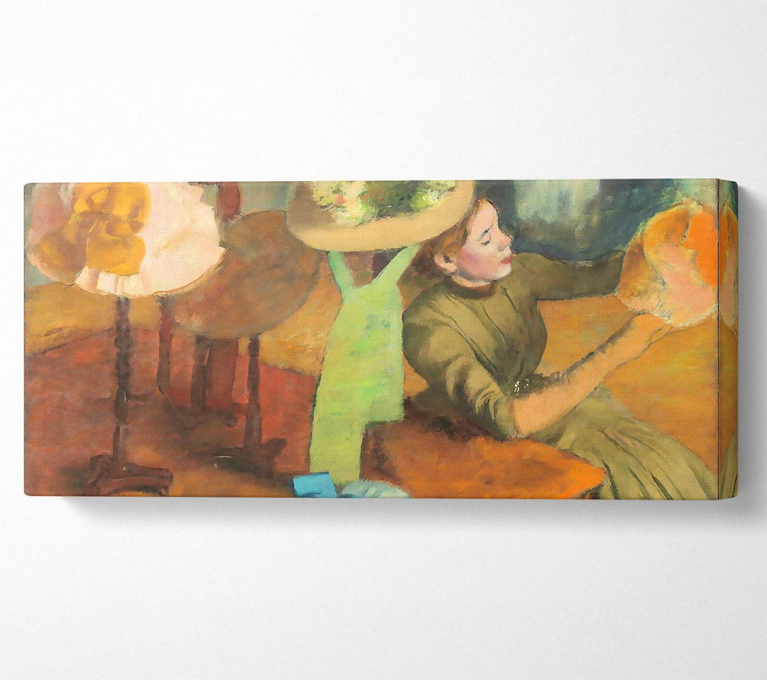 Degas The Millinery Shop canvas, printed on coated polyester canvas. Mounted on to a 44mm box frame, ready to hang.