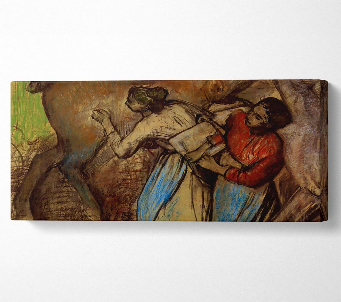 Picture of Degas Two Women Washing Horses Panoramic Canvas Wall Art