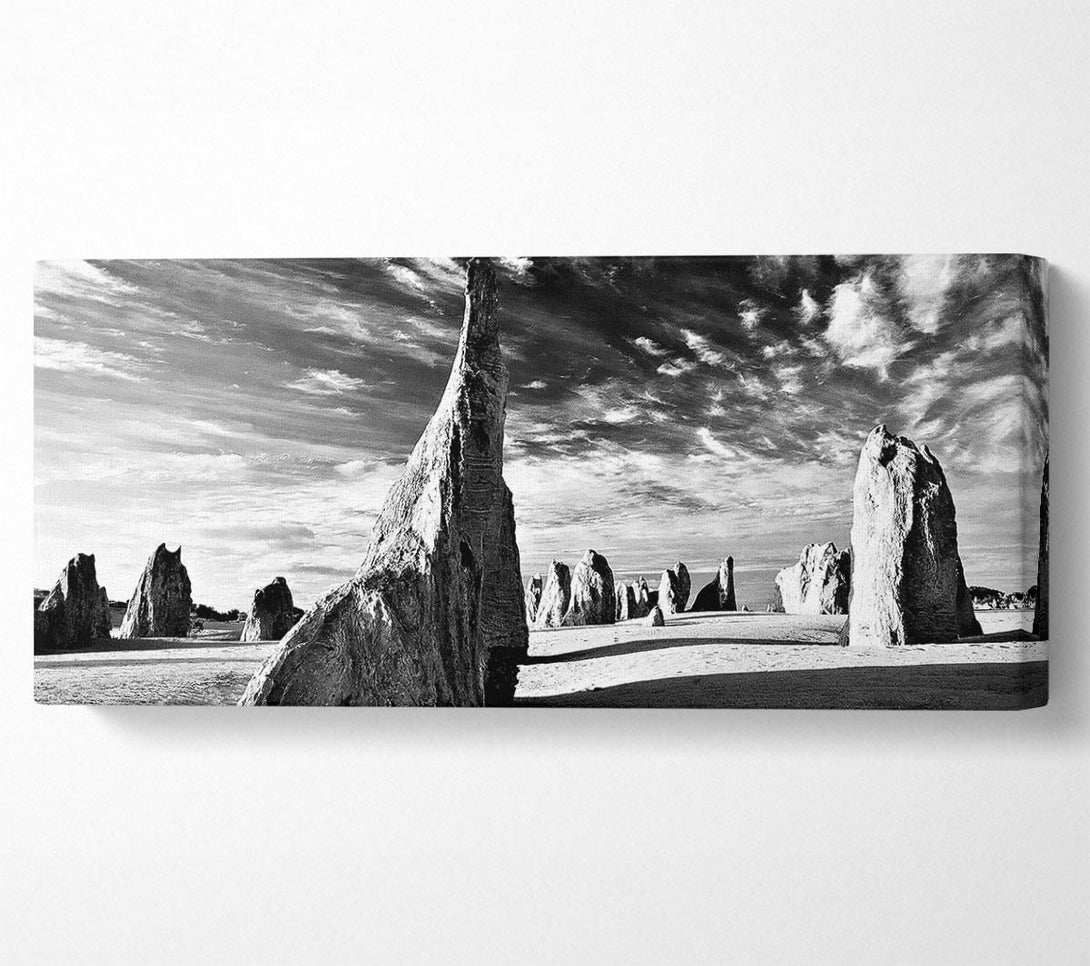 Picture of Desert Architecture Skies B n W Panoramic Canvas Wall Art