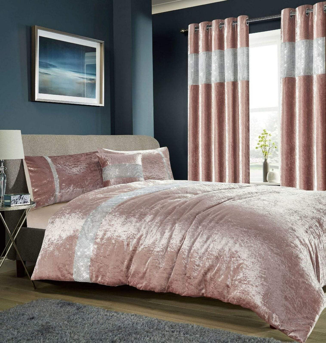 Diamante Crushed Velvet Duvet Set Breathable Luxurious OEKO-TEX Certified Bedding in Double King Super King Sizes Available in Silver Champagne Blush Pink by OLIVIA ROCCO