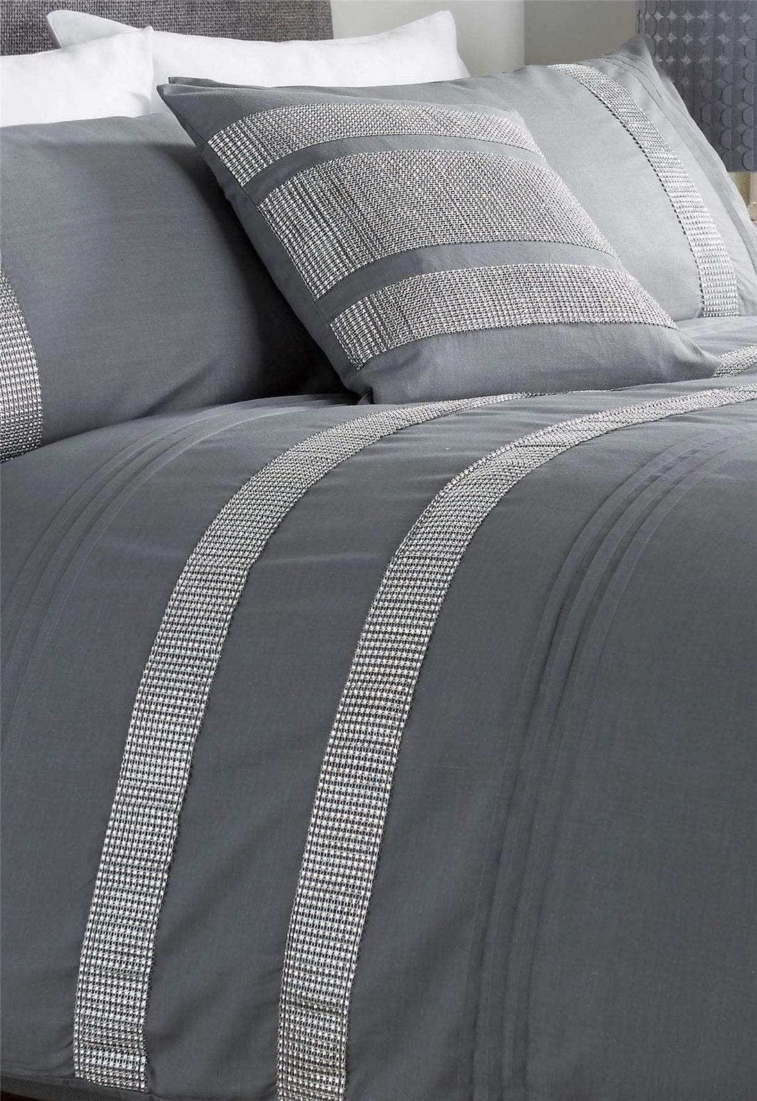 Description: The Diamante Glitz Duvet Set features intricate handwoven detailing with a sparkling crystal effect. This unique design element adds a touch of opulence and glamour to your bedroom decor.