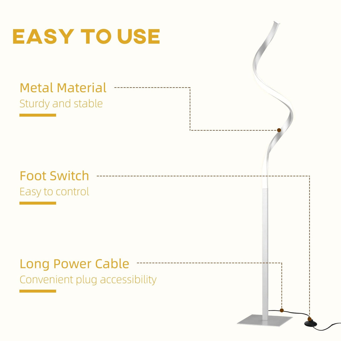 Good lighting is key for creating the right mood in your home. This HOMCOM living room lamp will do just that. A cool, spiral design brings a futuristic feel into your home, whilst the three different colour temperatures allow you to create the vibe you want, whenever. A metal structure for strength, with a square base to stand balanced. Turn on and enjoy the ambience.