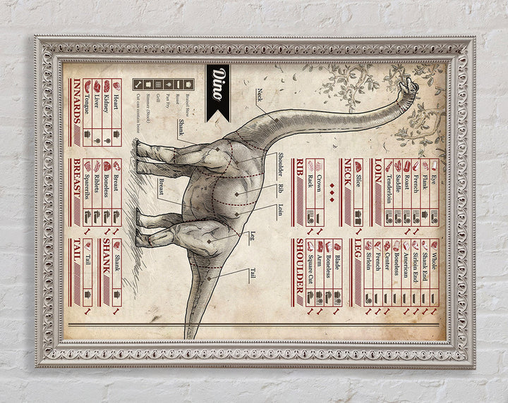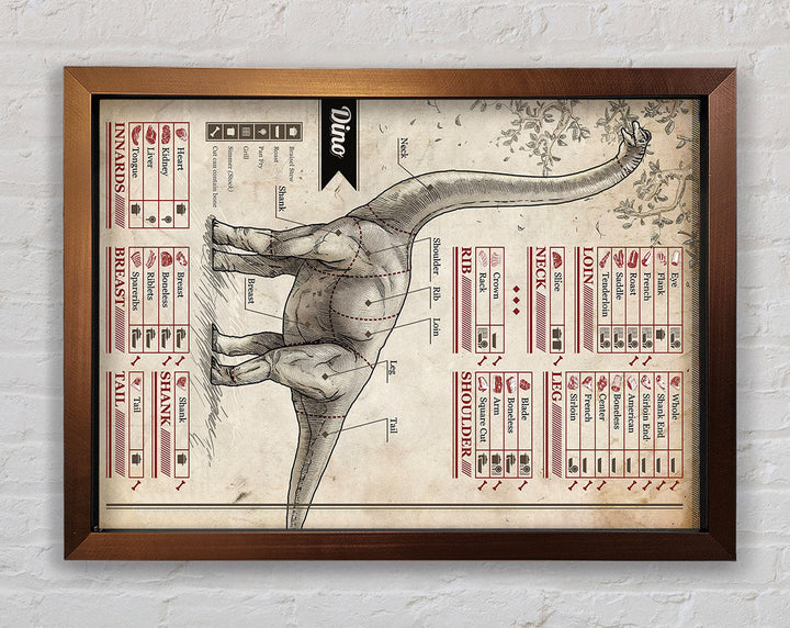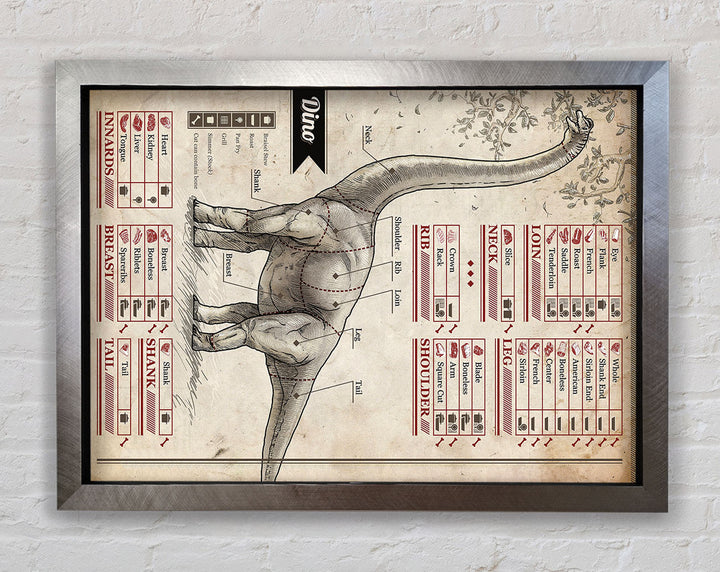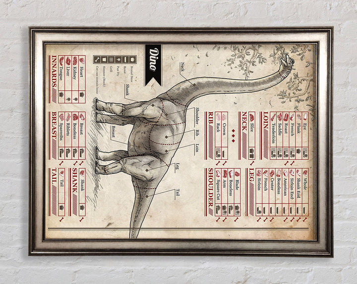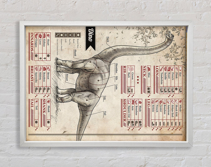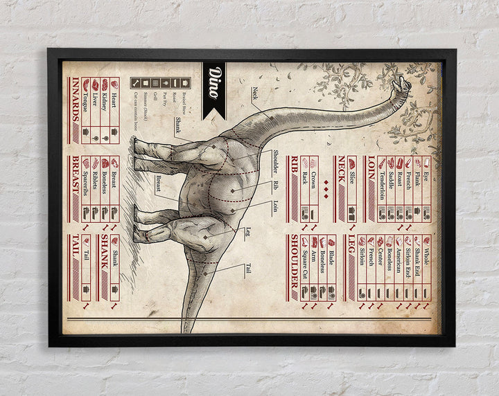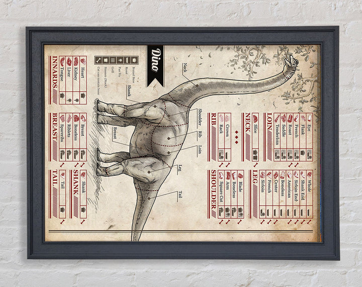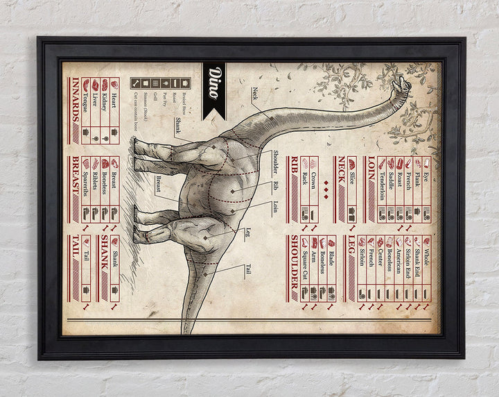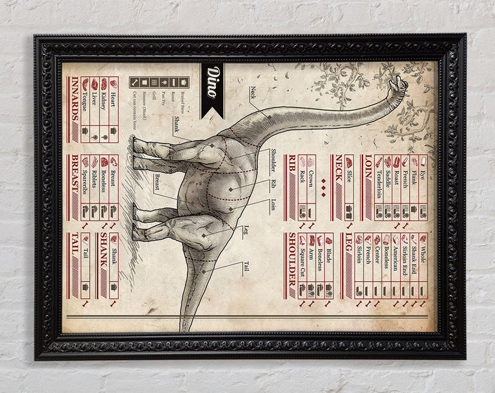 The Dino Butchers Selection Framed Print comes in a variety of colors, allowing you to match it seamlessly with your existing decor. Ready to hang right out of the box, this artwork saves you time and effort, making it an effortless addition to your wall. Ideal for dinosaur lovers and art enthusiasts alike, this framed art piece is a fun and stylish way to brighten up any room.