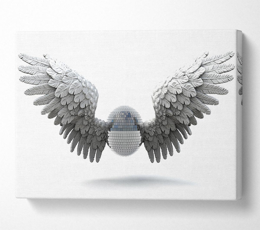 Transform your space with the Disco Ball Wings Canvas Print, a stunning piece of wall art that adds a touch of glamour to any room. This vibrant print features dazzling disco balls paired with elegant wings, creating a unique and eye-catching design. Available in five different sizes, from small to oversized, it’s perfect for any wall, whether you want a subtle accent or a bold statement piece. The high-quality canvas ensures lasting durability, and the vivid colors stay bright over time. Easy to hang, this canvas print is an effortless way to elevate your décor and bring a lively, artistic flair to your home.