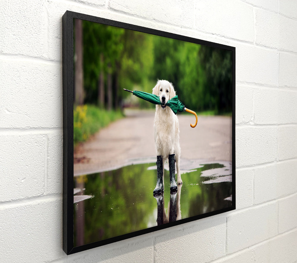 Dog Ready For A Walk In The Rain