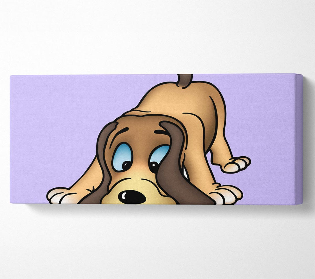 Dog Sniffing Lilac canvas, printed on coated polyester canvas. Mounted on to a 44mm box frame, ready to hang.