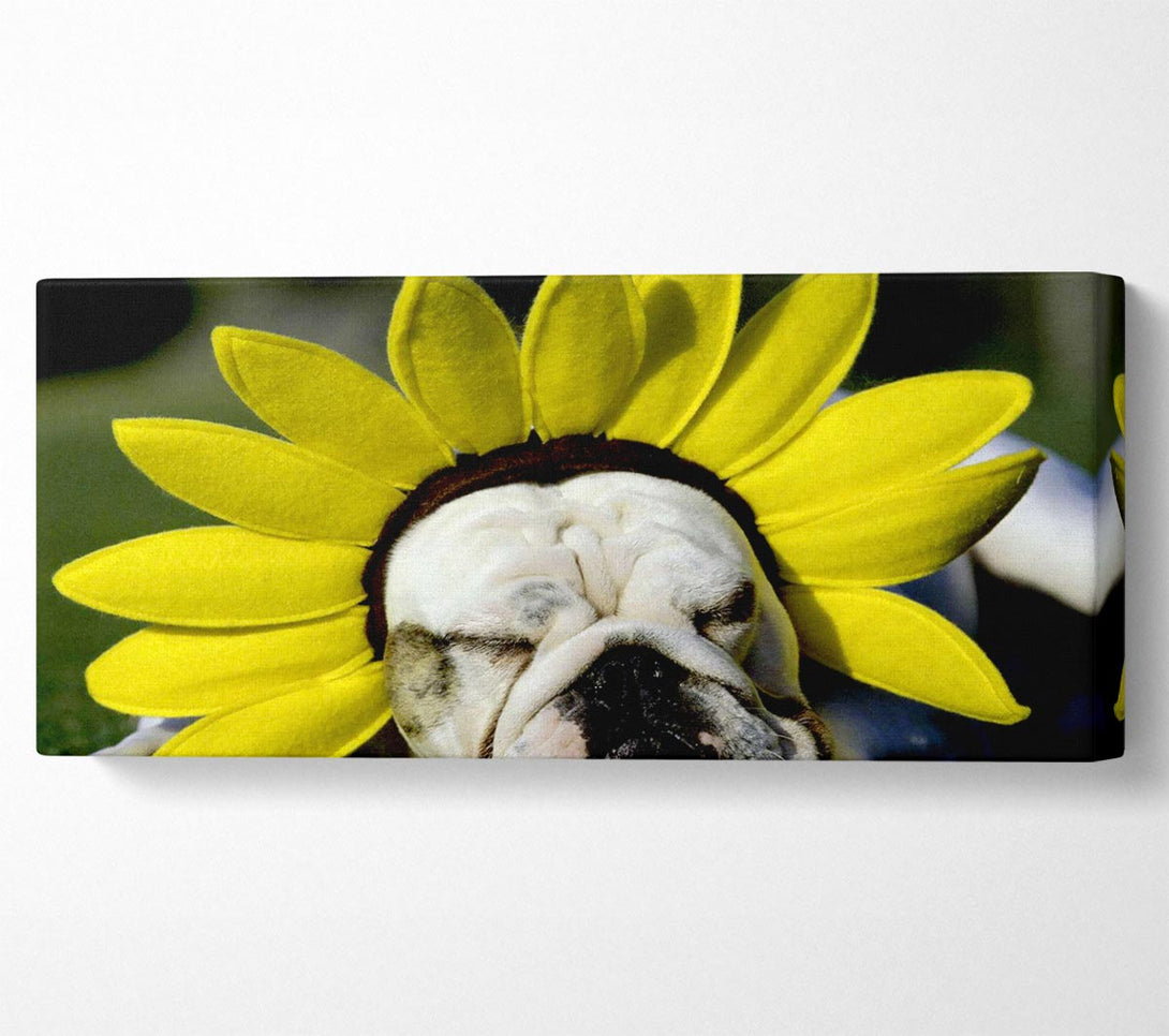 Picture of Dog Sunflower Hat Panoramic Canvas Wall Art