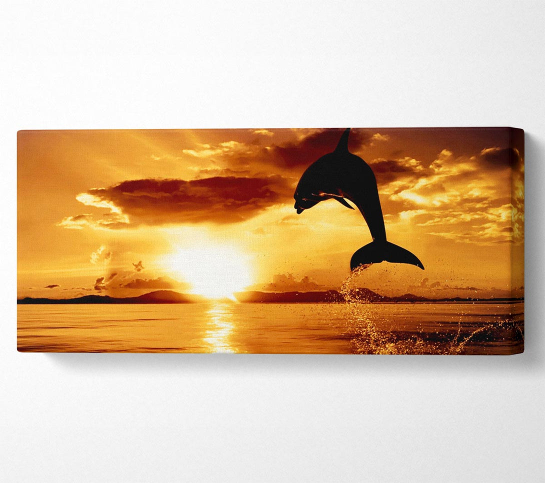 Picture of Dolphin Sunset Panoramic Canvas Wall Art