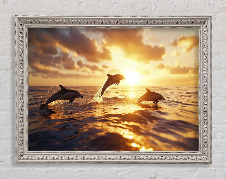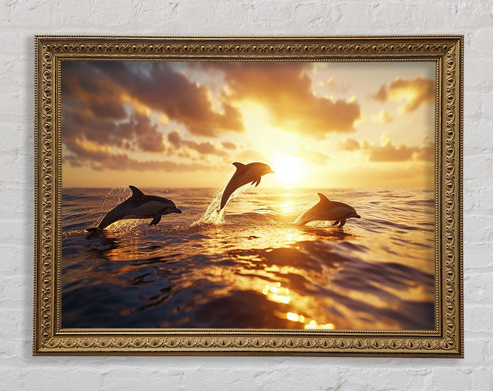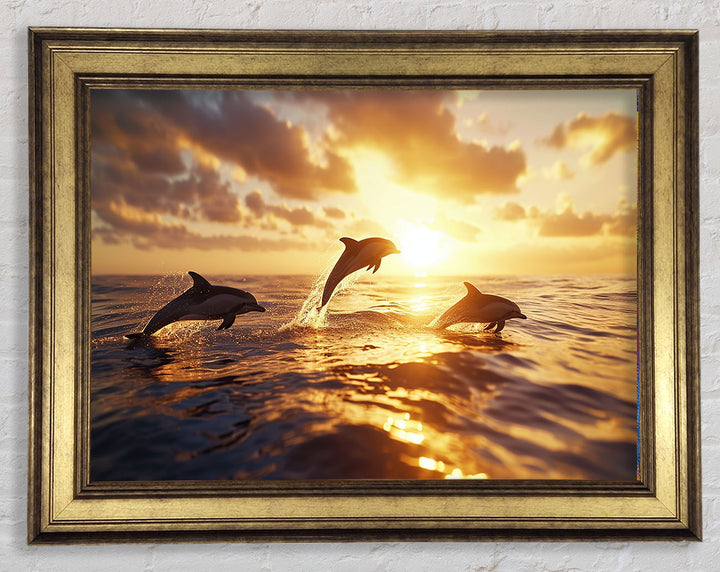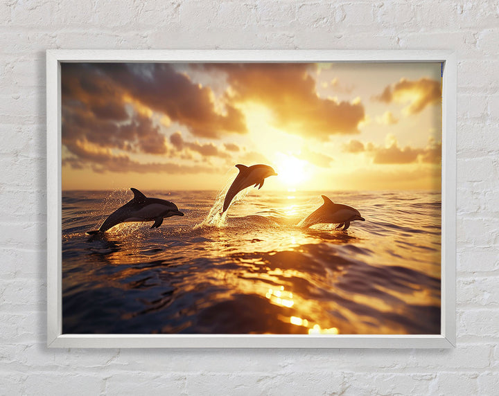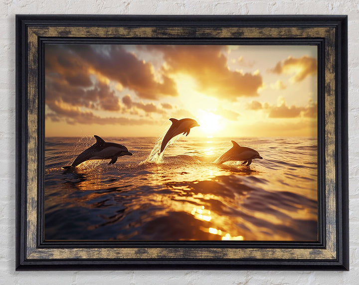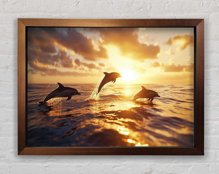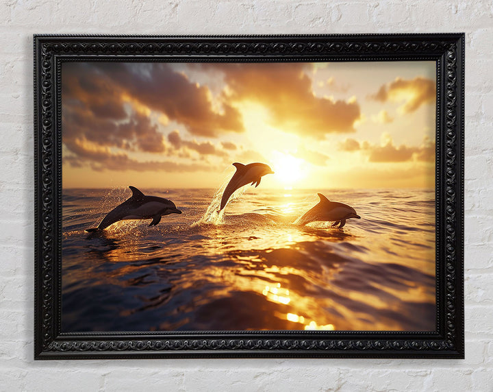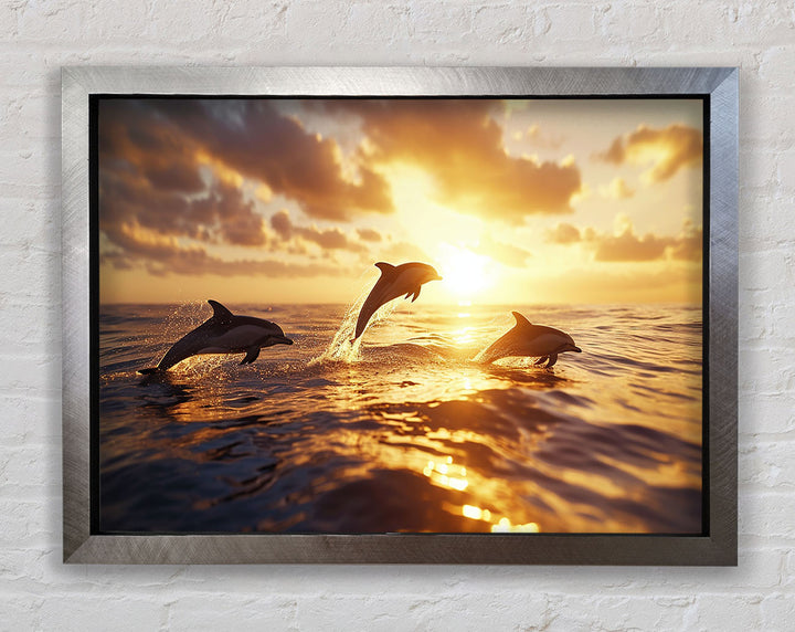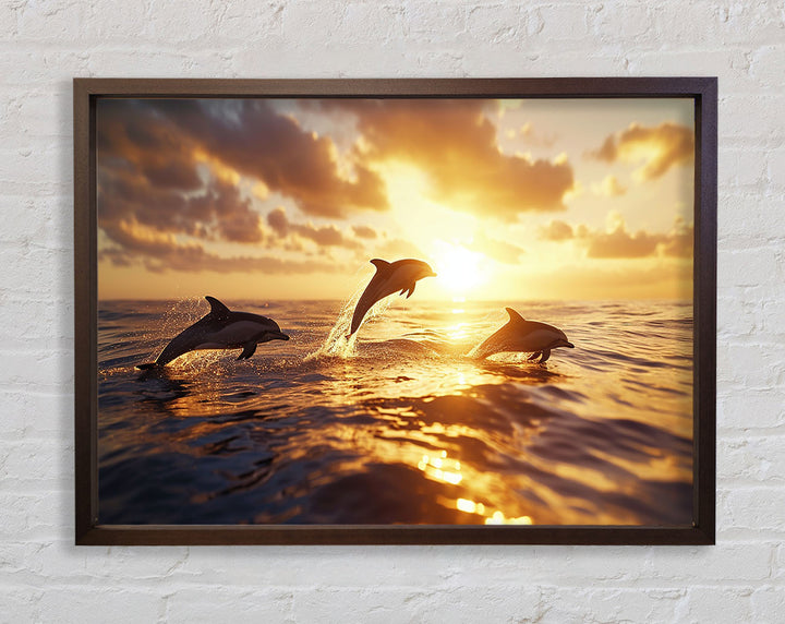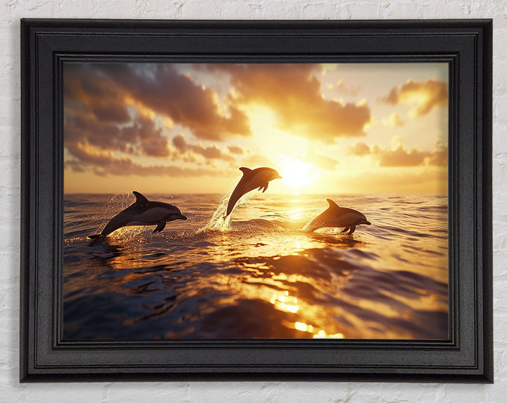 Add a splash of ocean magic to your home with the Dolphins Jumping Out The Sea Framed Print. This stunning framed art captures the beauty and grace of dolphins leaping from turquoise waves. Available in six sizes, ranging from small to oversized, it fits perfectly in any space, whether it's a cozy nook or a grand living room.