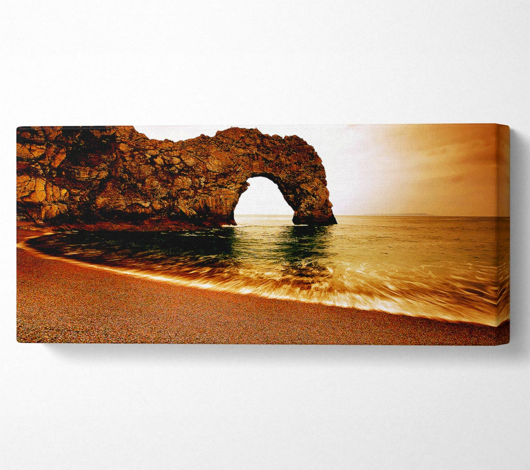 Doorway To The Ocean Sun canvas, printed on coated polyester canvas. Mounted on to a 44mm box frame, ready to hang.