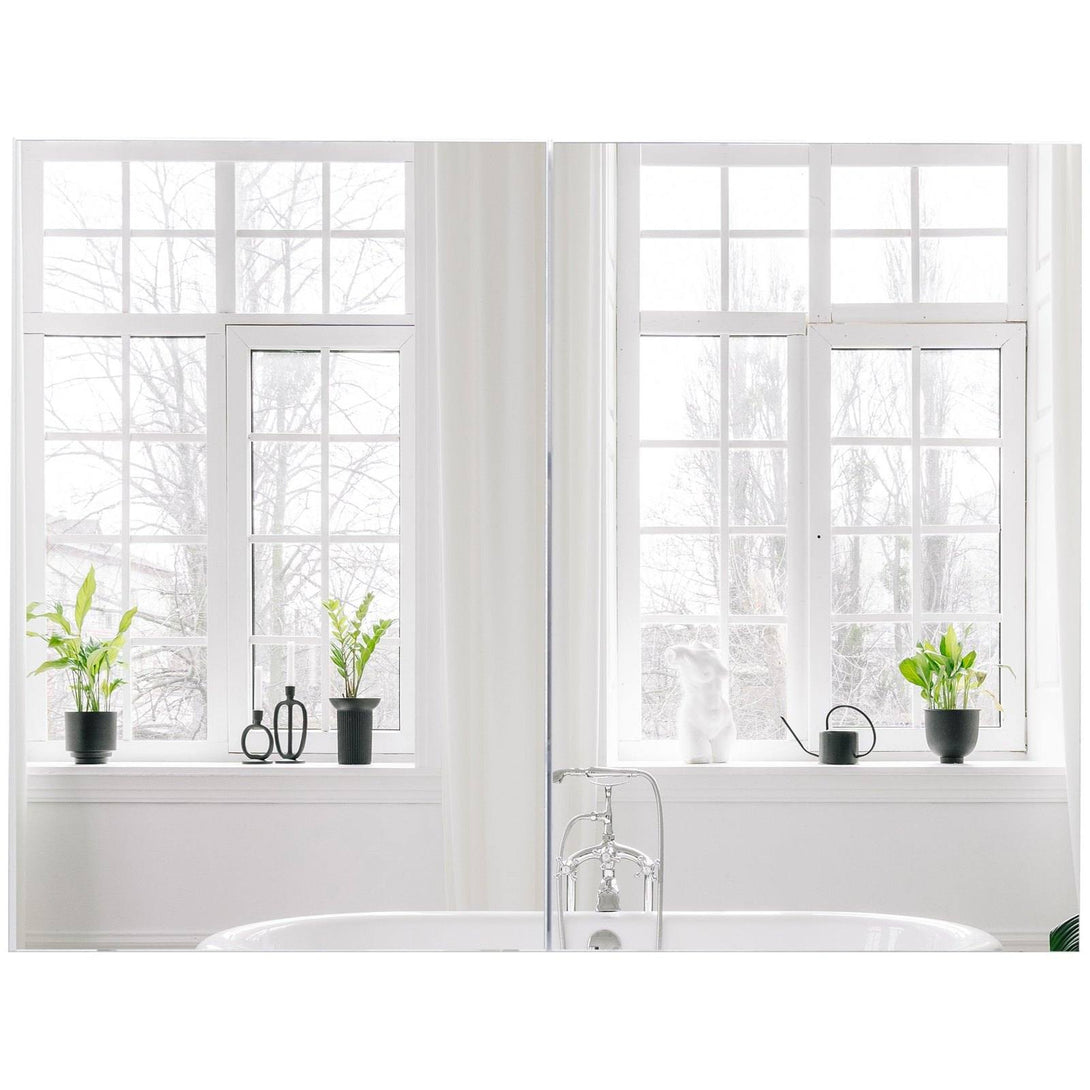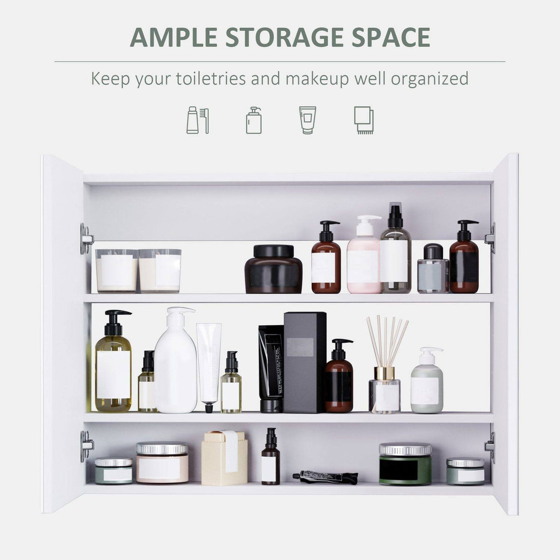 Double Door Wall Mounted Glass Mirror Cabinet Modern Storage Unit Bathroom Shelf Organiser Waterproof Wooden Frame 80Wx15Dx60Hcm