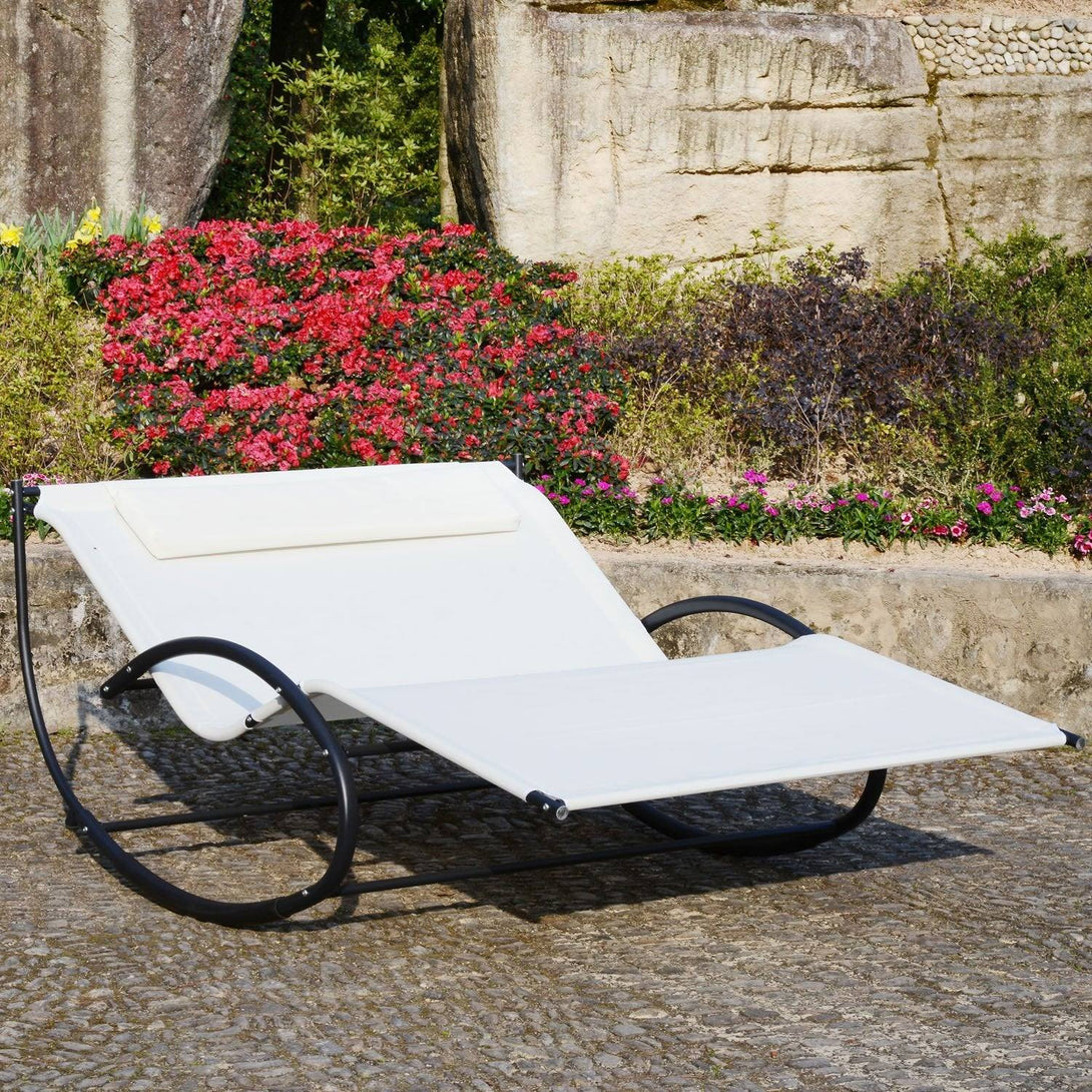 Double the relaxation with this two-person rocking bed from Outsunny. The metal frame is strong for full support, crafted into a curved zero-gravity shape, rocking forwards and backwards gently. The texteline seat holds you properly, and there's a top pillow for comfort. Seat is water-resistant to keep it lightly dry. Take your outdoor relaxation to a new level.