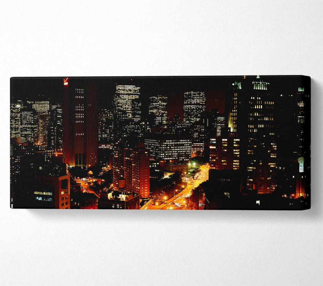 Downtown Manhattan canvas, printed on coated polyester canvas. Mounted on to a 44mm box frame, ready to hang.