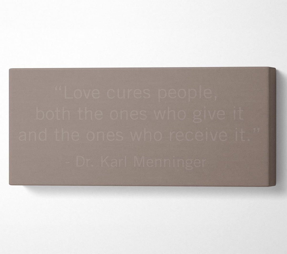 Dr Karl Menninger Love Cures People Beige canvas, printed on coated polyester canvas. Mounted on to a 44mm box frame, ready to hang.