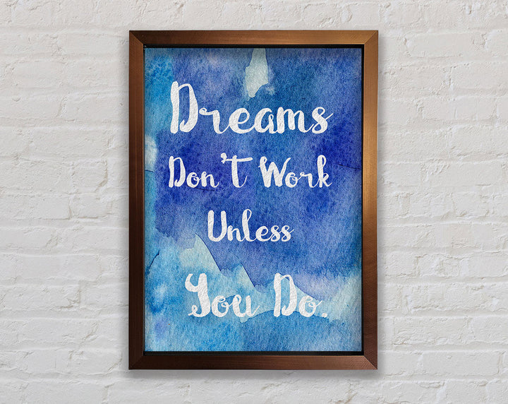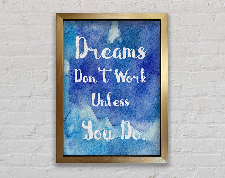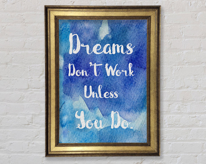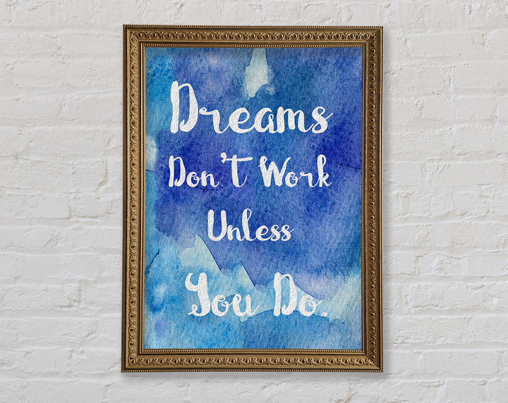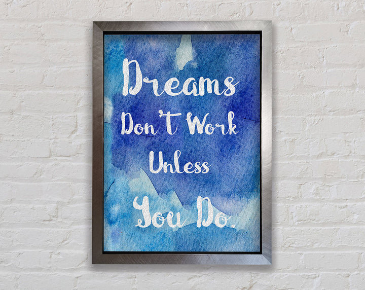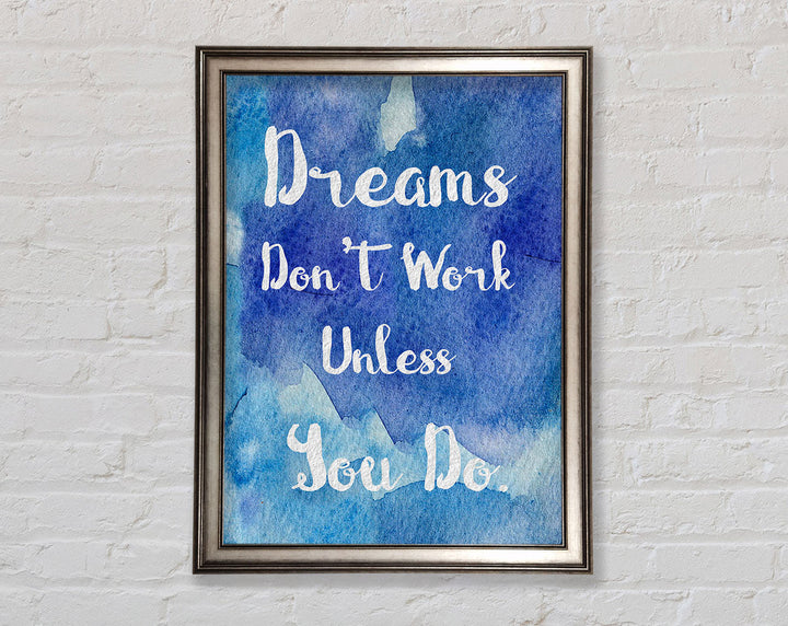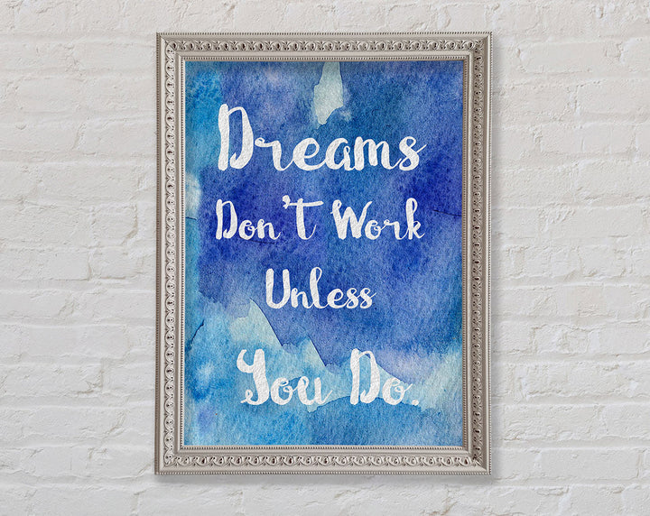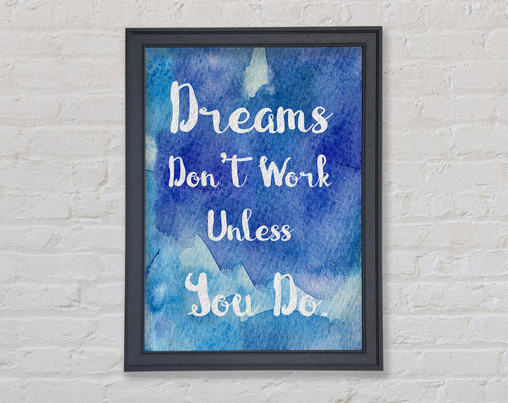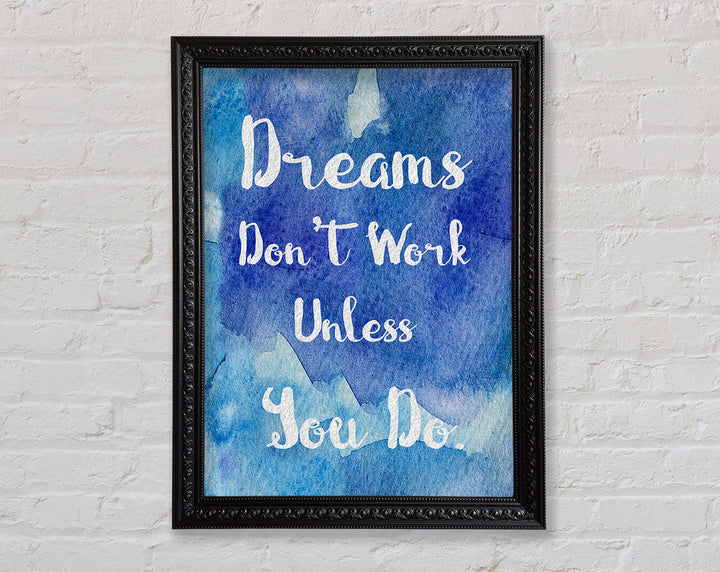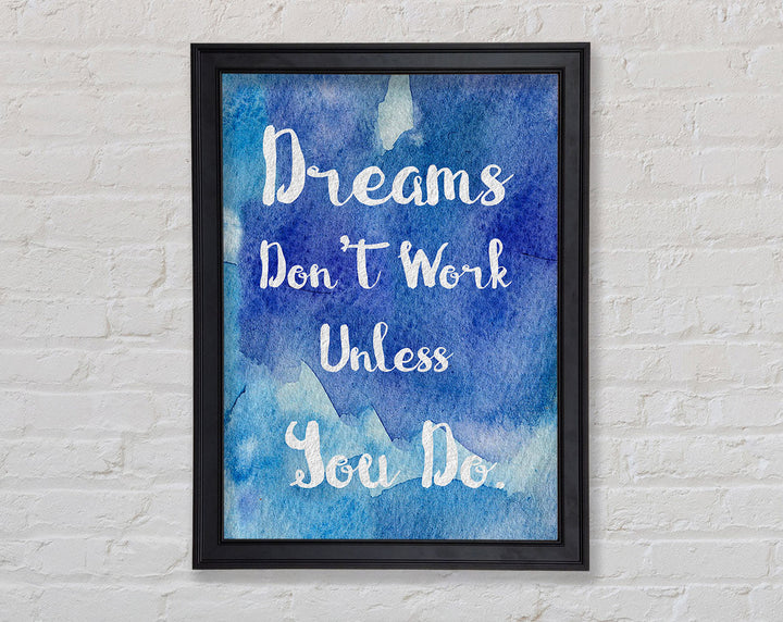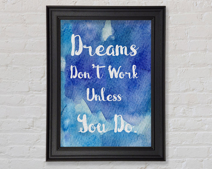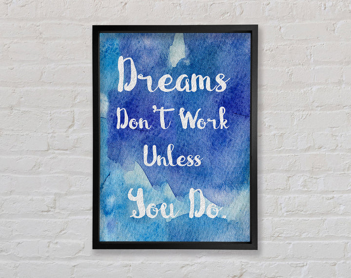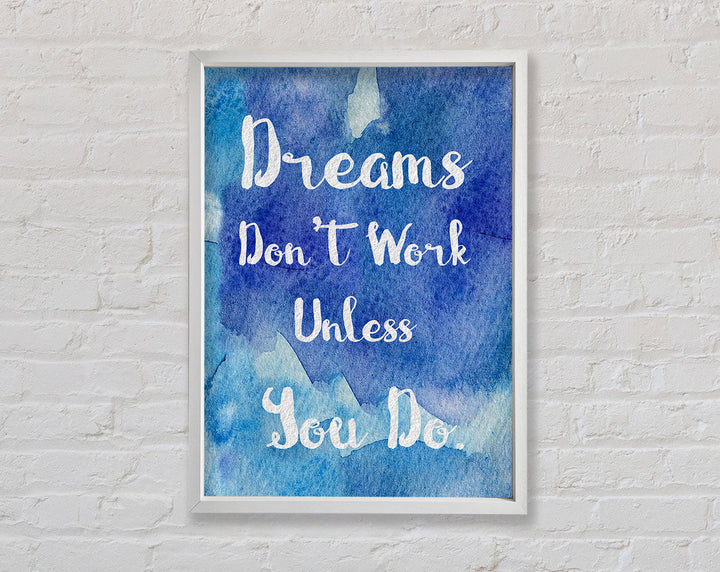 Introducing the Dreams Don't Work Unless Framed Print, a stunning piece of framed art that inspires and motivates. Available in six sizes, from small to oversized, this handmade masterpiece caters to any space in your home or office. Choose from a variety of vibrant colors to match your decor perfectly. Each print is crafted with care in the United Kingdom, ensuring top-notch quality. Ready to hang right out of the box, it’s a hassle-free way to elevate your interior design. Add a touch of elegance and inspiration to your walls with this beautiful framed art.