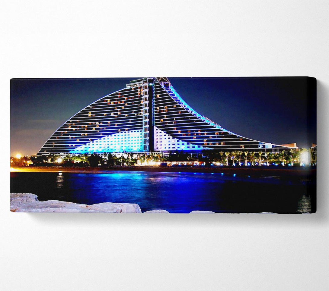 Dubai Architectural Delight canvas, printed on coated polyester canvas. Mounted on to a 44mm box frame, ready to hang.