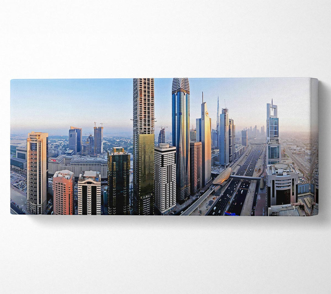 Dubai Building Blocks canvas, printed on coated polyester canvas. Mounted on to a 44mm box frame, ready to hang.