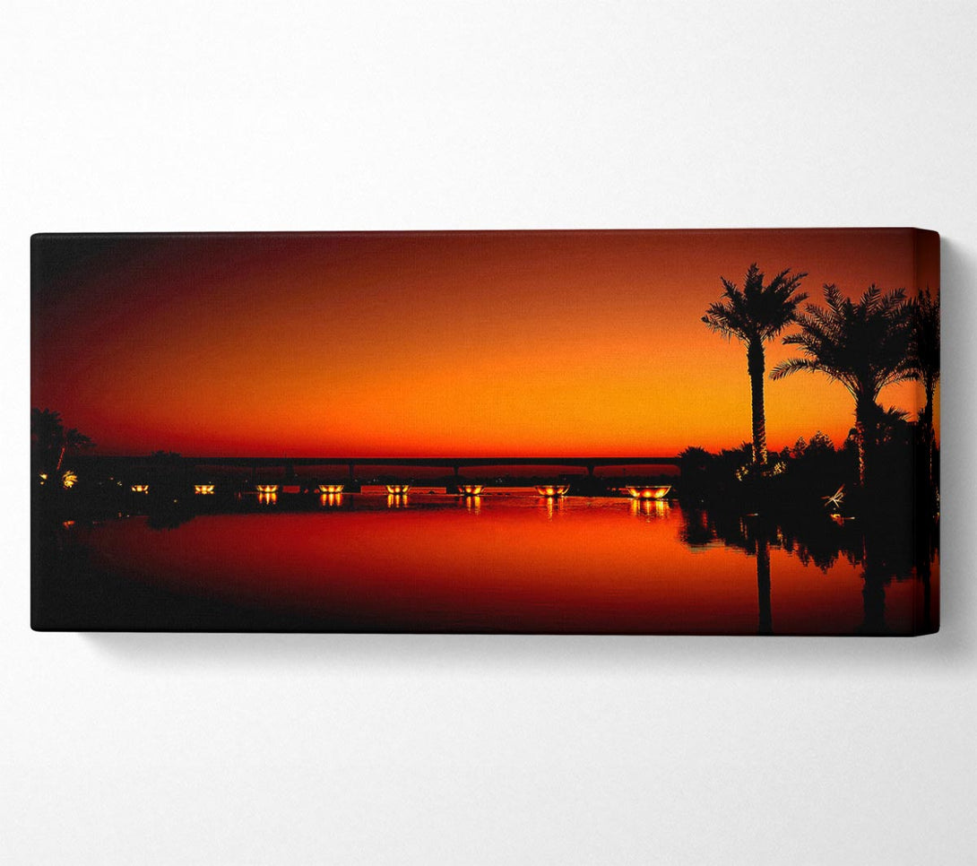 Dubai Night canvas, printed on coated polyester canvas. Mounted on to a 44mm box frame, ready to hang.