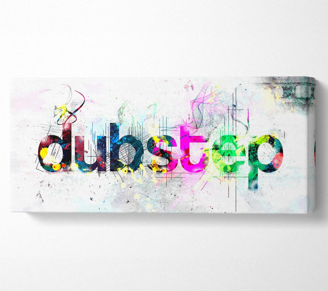 Dubstep Coloured canvas, printed on coated polyester canvas. Mounted on to a 44mm box frame, ready to hang.