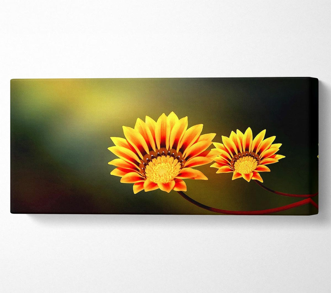 Duo Fire Flowers canvas, printed on coated polyester canvas. Mounted on to a 44mm box frame, ready to hang.