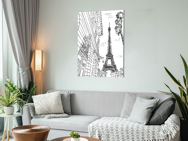 Eiffel Tower Streets 2 Printed on brushed aluminium dibond. A modern way to display art and easy to maintain.
