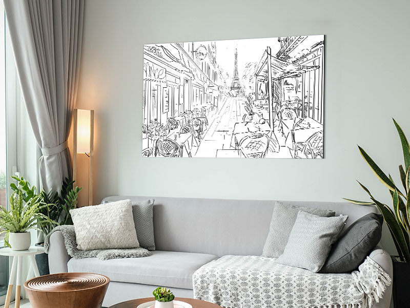 Eiffel Tower Streets 4 Printed on brushed aluminium dibond. A modern way to display art and easy to maintain.