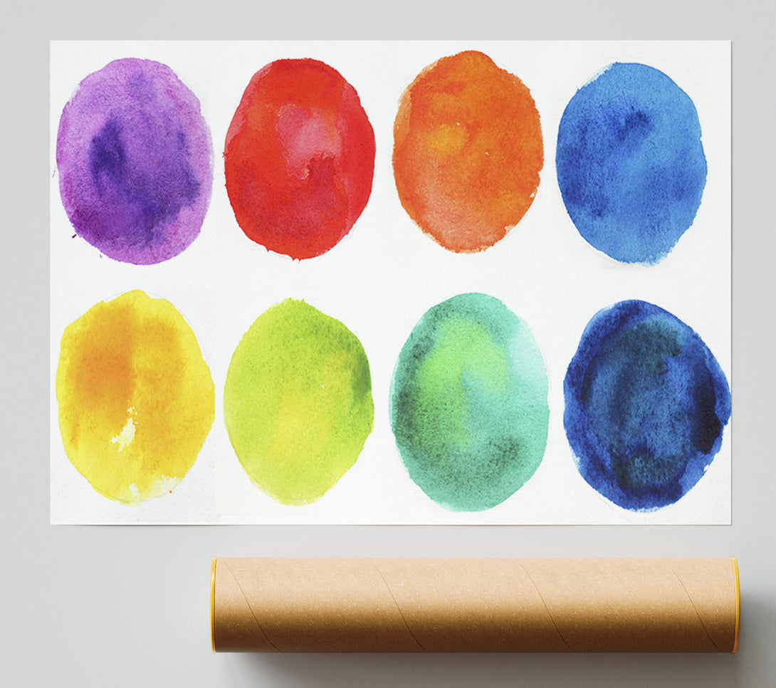Our Eight Blobs Of Colour Poster is printed 260 GSM premium lustre paper that offers vibrant colours and exceptional detail.