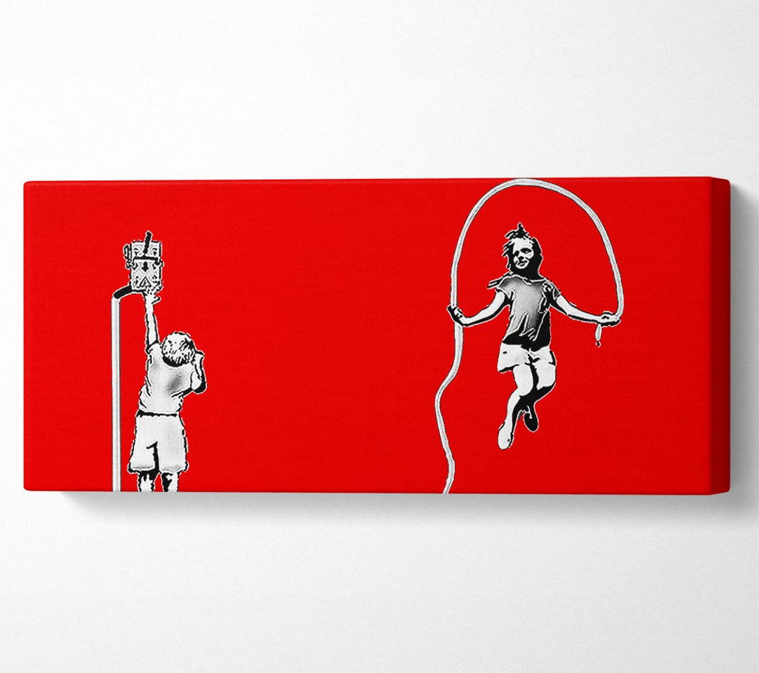 Electric Skipping Rope Red canvas, printed on coated polyester canvas. Mounted on to a 44mm box frame, ready to hang.