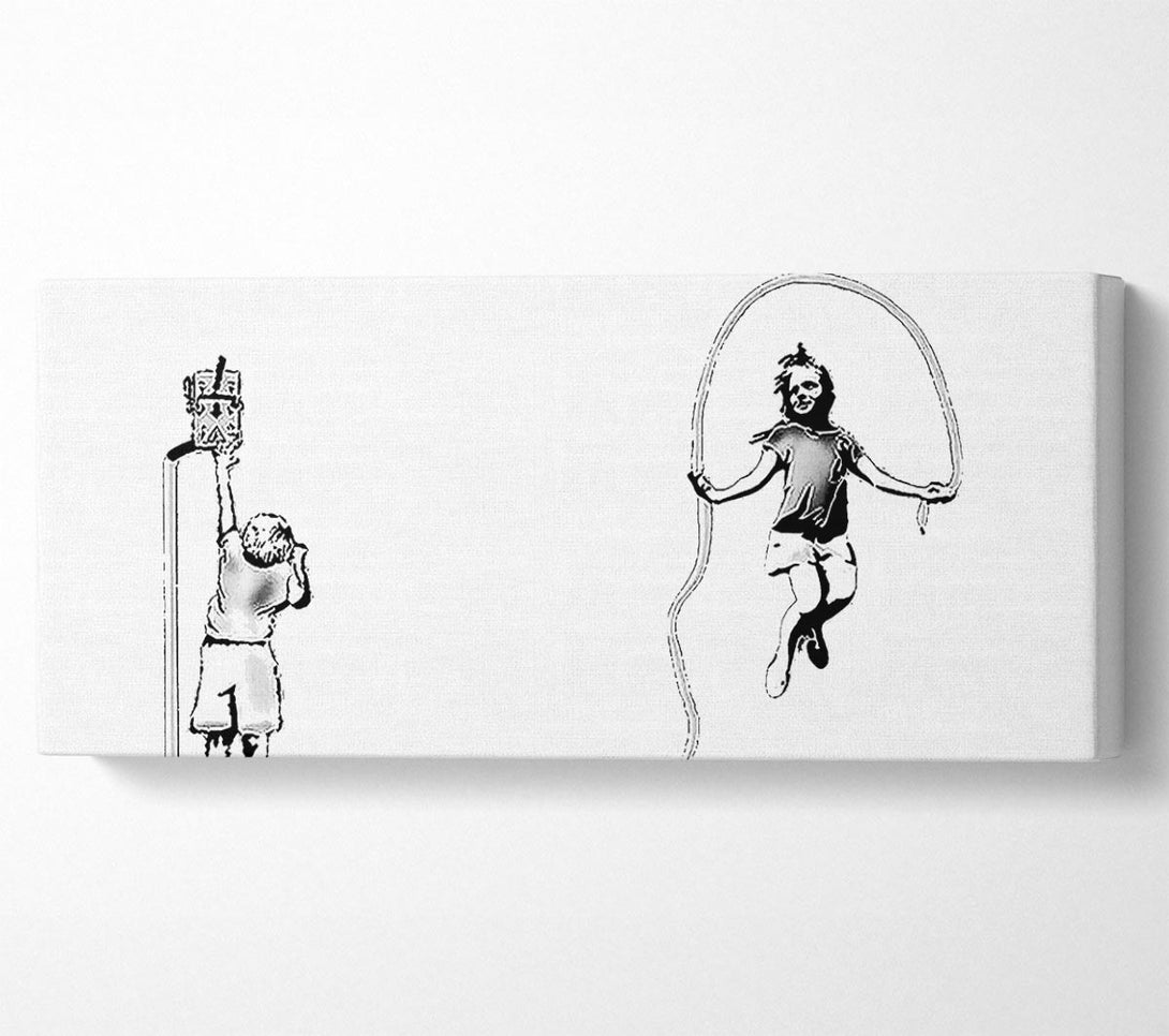 Electrical Skipping White canvas, printed on coated polyester canvas. Mounted on to a 44mm box frame, ready to hang.