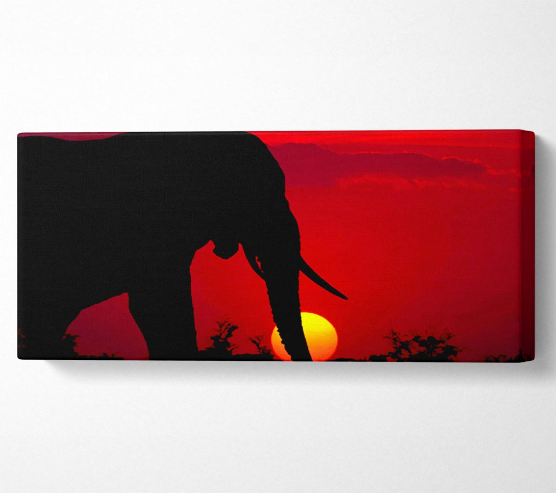 Elephant At Sundown canvas, printed on coated polyester canvas. Mounted on to a 44mm box frame, ready to hang.