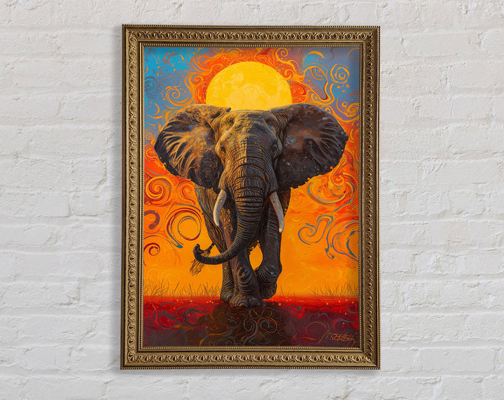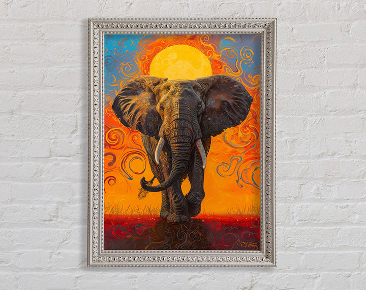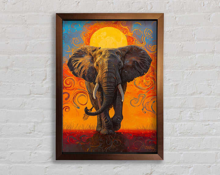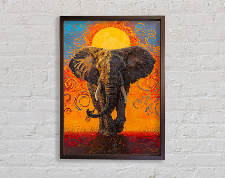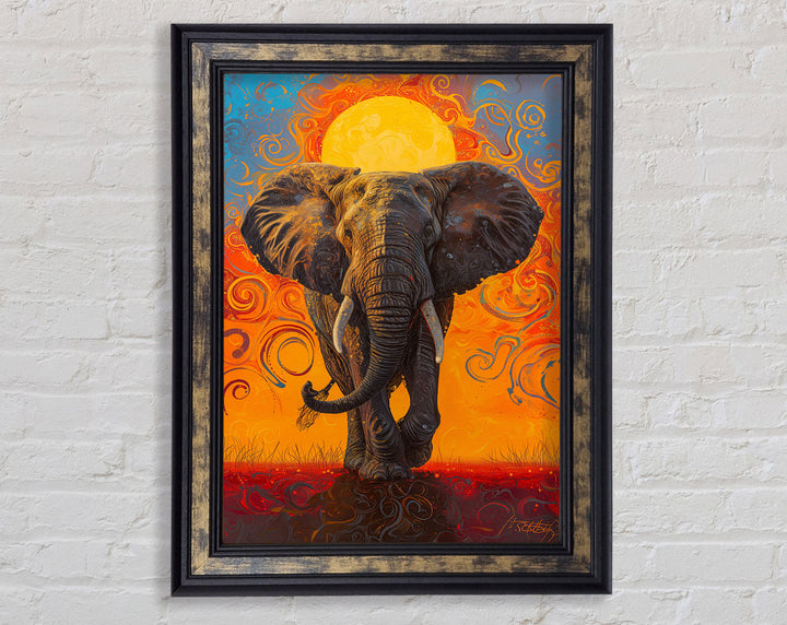 Introducing the Elephant Burning Sun Framed Print, a stunning piece of framed art that captivates with its vibrant colors and intricate details. This unique artwork features a majestic elephant against a blazing sun, creating a dramatic and eye-catching display. Available in six sizes, ranging from small to oversized, it fits perfectly in any space, whether it's a cozy corner or a grand wall. Each piece is handmade in the United Kingdom, ensuring high-quality craftsmanship. The print comes ready to hang, making it easy to add a touch of elegance to your home decor. Choose from a variety of colors to match your style and enjoy the beauty of this exquisite framed art.