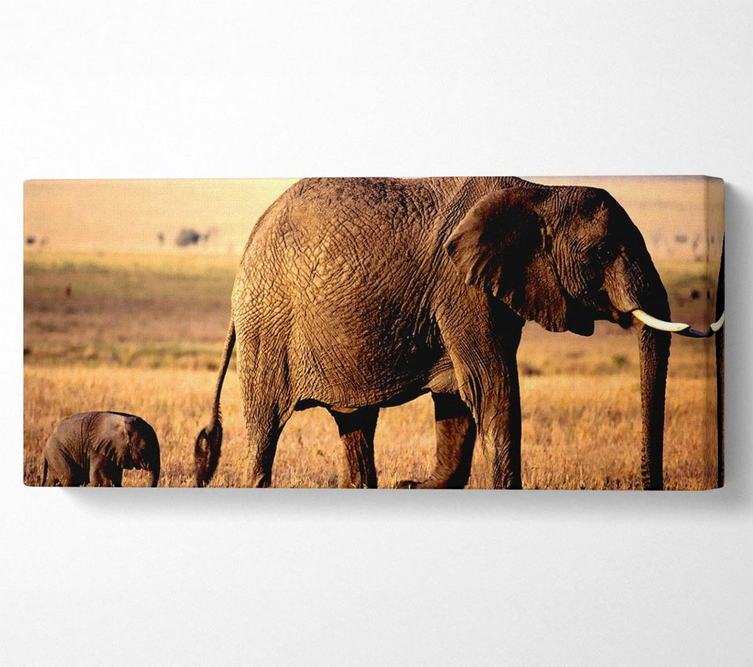 Picture of Elephant Mother And Baby Panoramic Canvas Wall Art