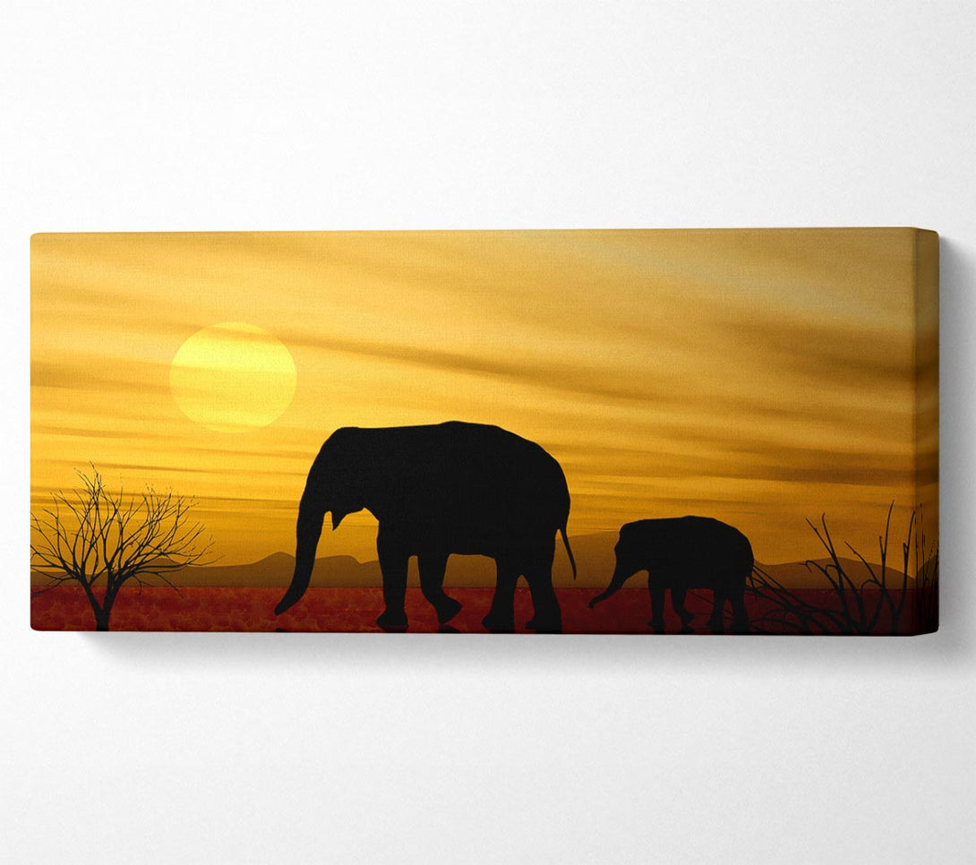 Elephant Safari Desert canvas, printed on coated polyester canvas. Mounted on to a 44mm box frame, ready to hang.