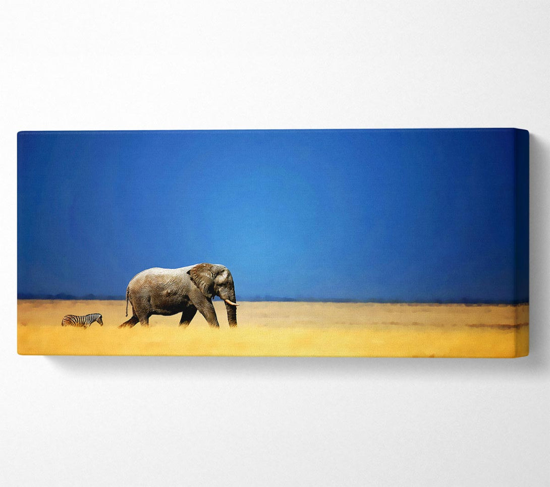 Elephant Safari canvas, printed on coated polyester canvas. Mounted on to a 44mm box frame, ready to hang.