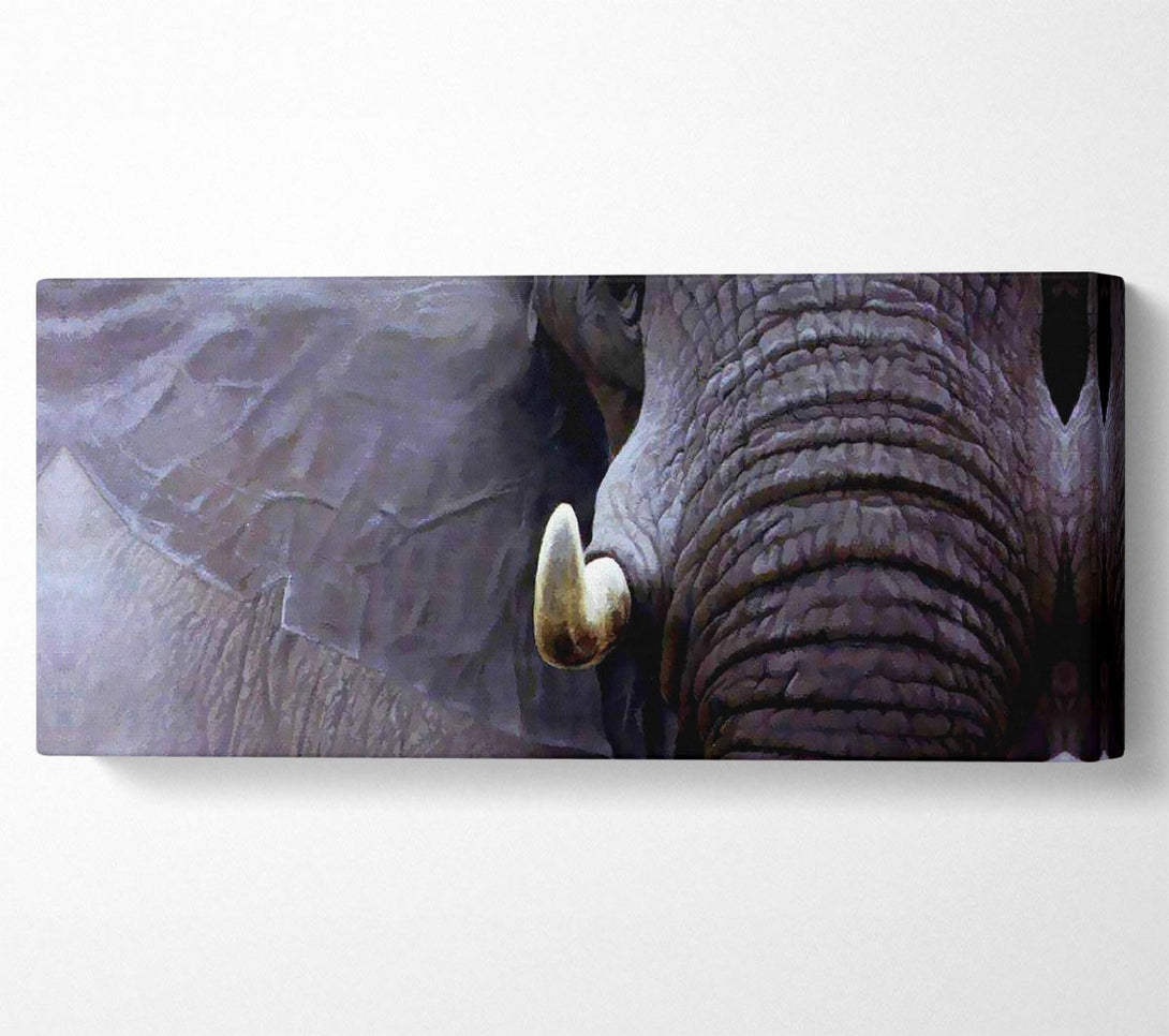 Elephant Stare canvas, printed on coated polyester canvas. Mounted on to a 44mm box frame, ready to hang.